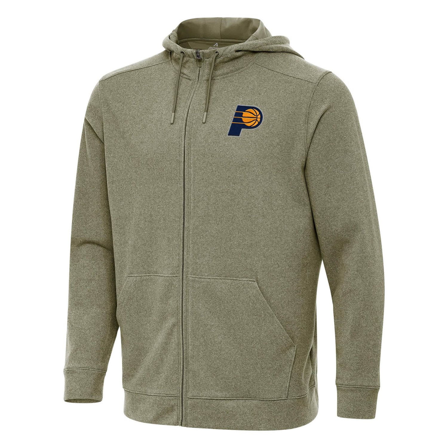 Stay warm and rep your Indiana Pacers with this Antigua Effortless Full-Zip Hoodie Jacket This hoodie is crafted from Antigua's signature brushed fleece fabric providing a luxuriously soft feel against your skin The three-panel hood features an adjustable drawstring for customizable coverage while two front pockets keep your hands warm and essential items within reach