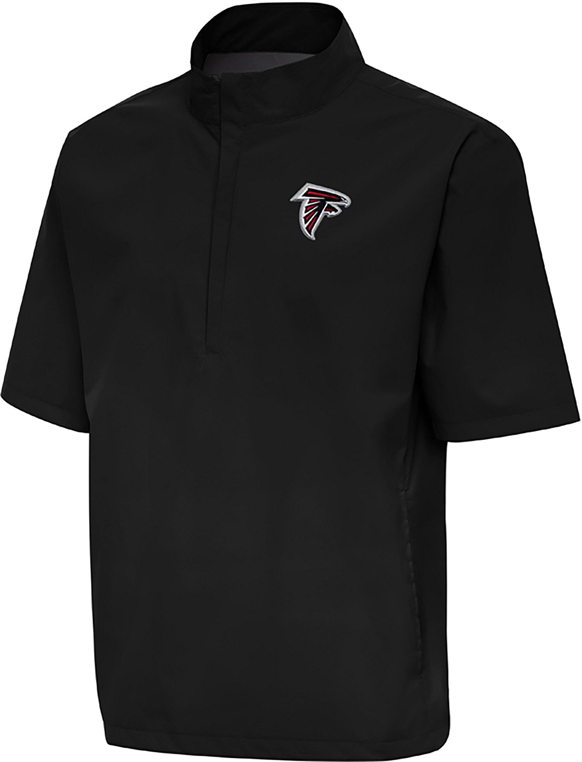 With this Antigua Men's Atlanta Falcons Brisk Short Sleeve 1/4 Zip Pullover, you can cheer for your team in the weather. The pullover's 100% polyester construction offers durability, and its resistance to wind and water helps keep you comfortable outdoors. The Atlanta Falcons logo is displayed on the chest.