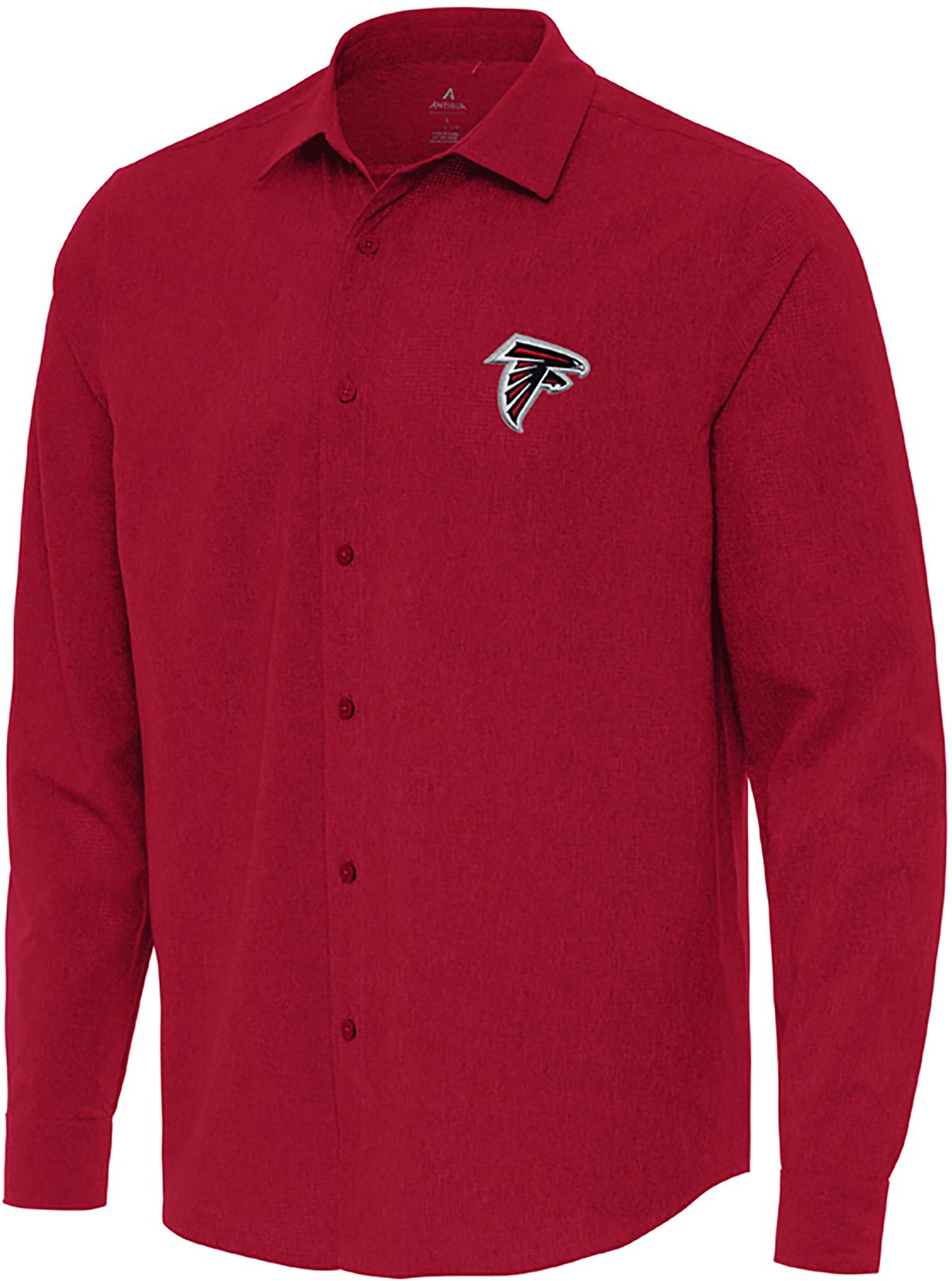 Add a touch of class to your gameday outfit with this Antigua Men's Atlanta Falcons Exposure Woven Long Sleeve Shirt. It is made of 100% polyester textured fabric for durability and a comfortable feel, and the shirt has a self-fabric collar with a collar stand for a structured and presentable look. Features an Atlanta Falcons logo on the chest.