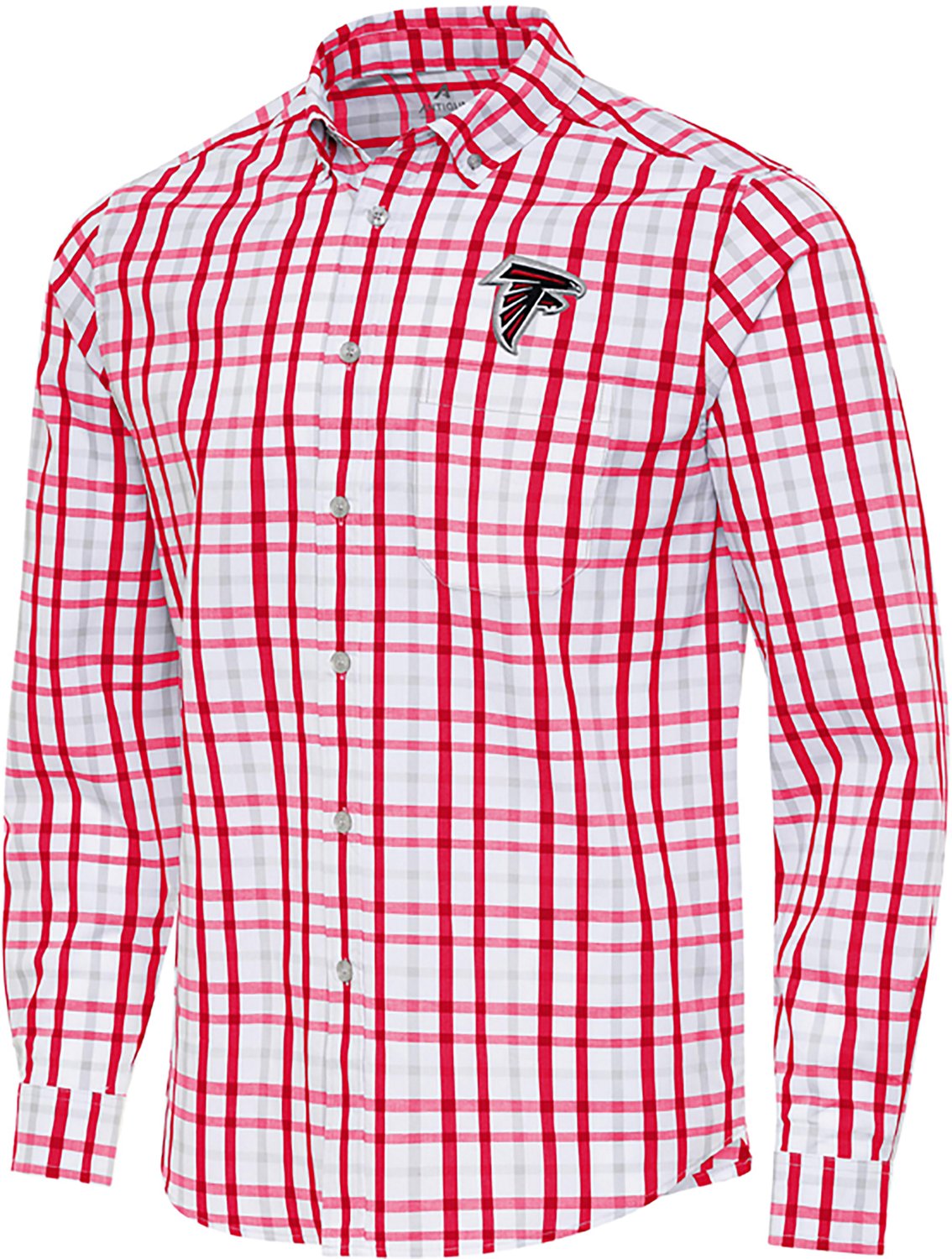 Class up your gameday outfit with this Antigua Men's Atlanta Falcons Tending 2 Long Sleeve Woven Shirt. It is made of 70% cotton, 27% polyester and 3% spandex for a lightweight and soft feel, and the shirt has a left chest pocket for convenient storage. Features an Atlanta Falcons logo.