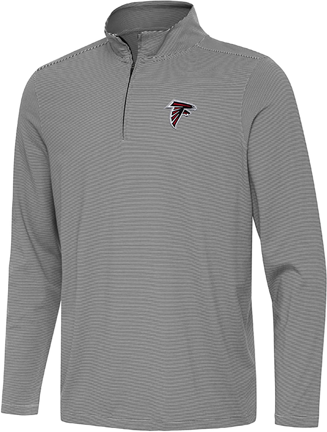 Support your team with a touch of sophistication in this Antigua Men's Atlanta Falcons Twine 1/4 Zip Pullover. It is made of 92% polyester and 8% spandex for durability and flexibility, and the pullover boasts a mini stripe pattern for a subtle design. Features an Atlanta Falcons logo on the chest.