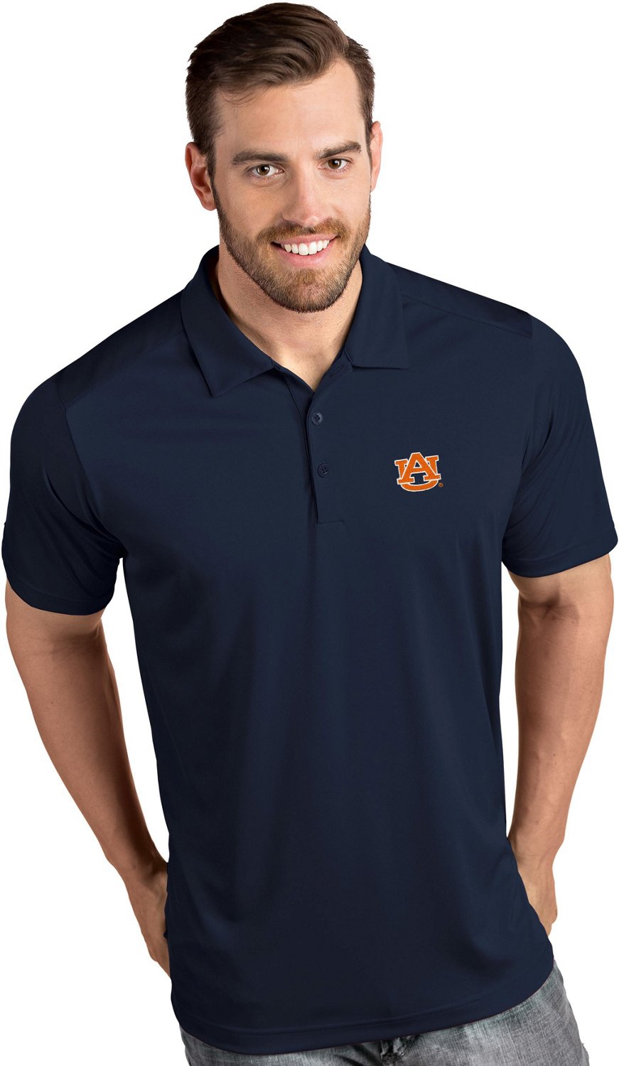 Rally for the Tigers in the Antigua Men's Auburn University Tribute Polo. This short-sleeve polo looks great in the stands or at work with its self-fabric collar and 3-button placket. Desert Dry™ technology helps to keep you dry, and the team-themed design adds a stylish flair. For more team shirts and NCAA gear, check out Academy.com.