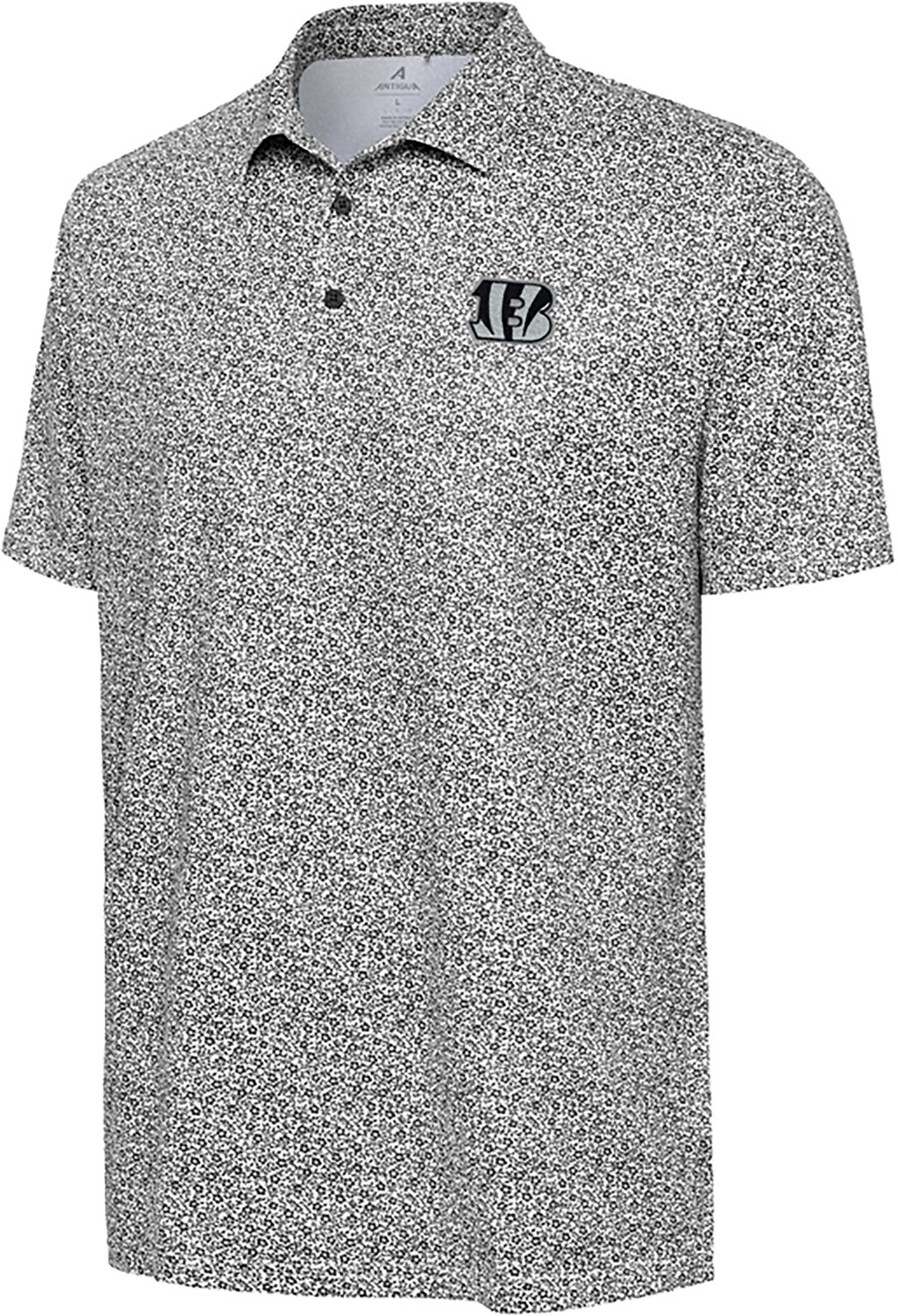 Let everyone know you're a true fan when you wear the Antigua Men's Bengals Field Ditsy Polo Shirt. The 94% polyester and 6% poly sheen fabric offers lasting wear, while the team graphic puts your fandom front and center.