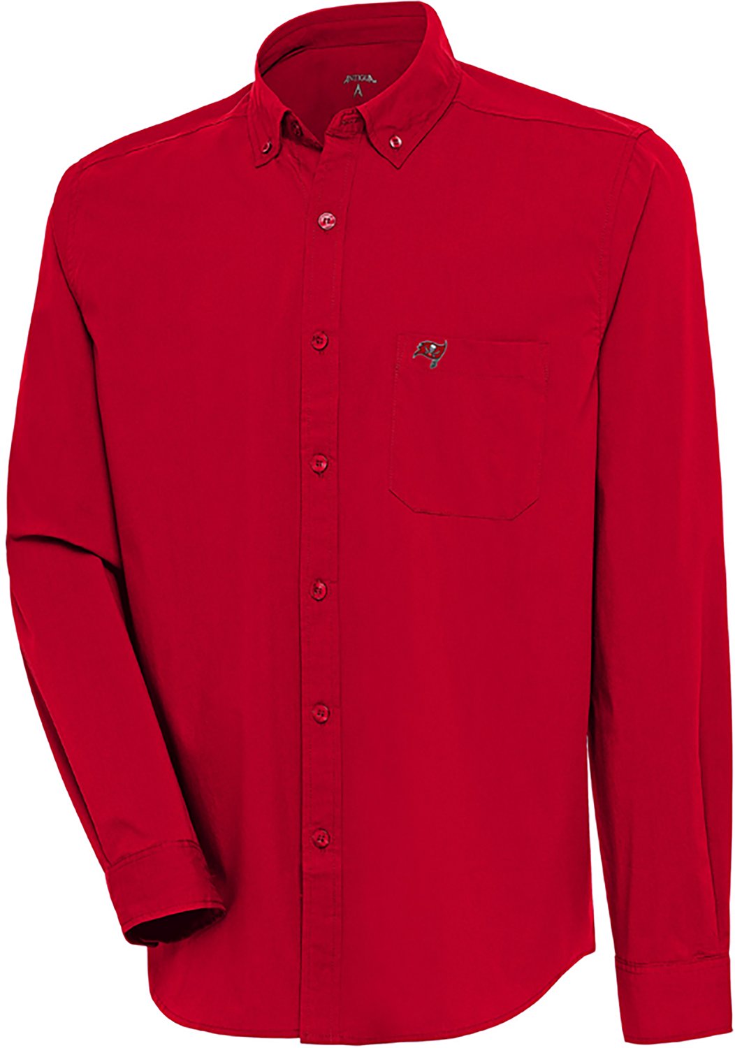Display your fan spirit with the Antigua Men's Buccaneers Flight Long Sleeve Woven Shirt. The cotton, polyester and spandex blend provides comfort and lasting wear, while the team logo on the left chest makes it clear you're a true fan.