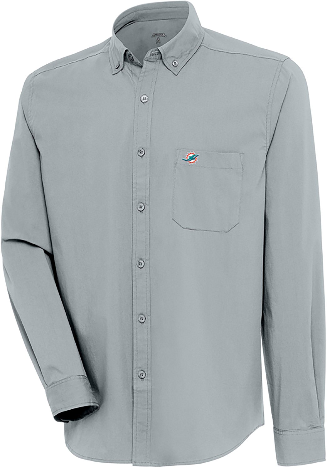 Display your fan spirit with the Antigua Men's Dolphins Flight Long Sleeve Woven Shirt. The cotton, polyester and spandex blend provides comfort and lasting wear, while the team logo on the left chest makes it clear you're a true fan.