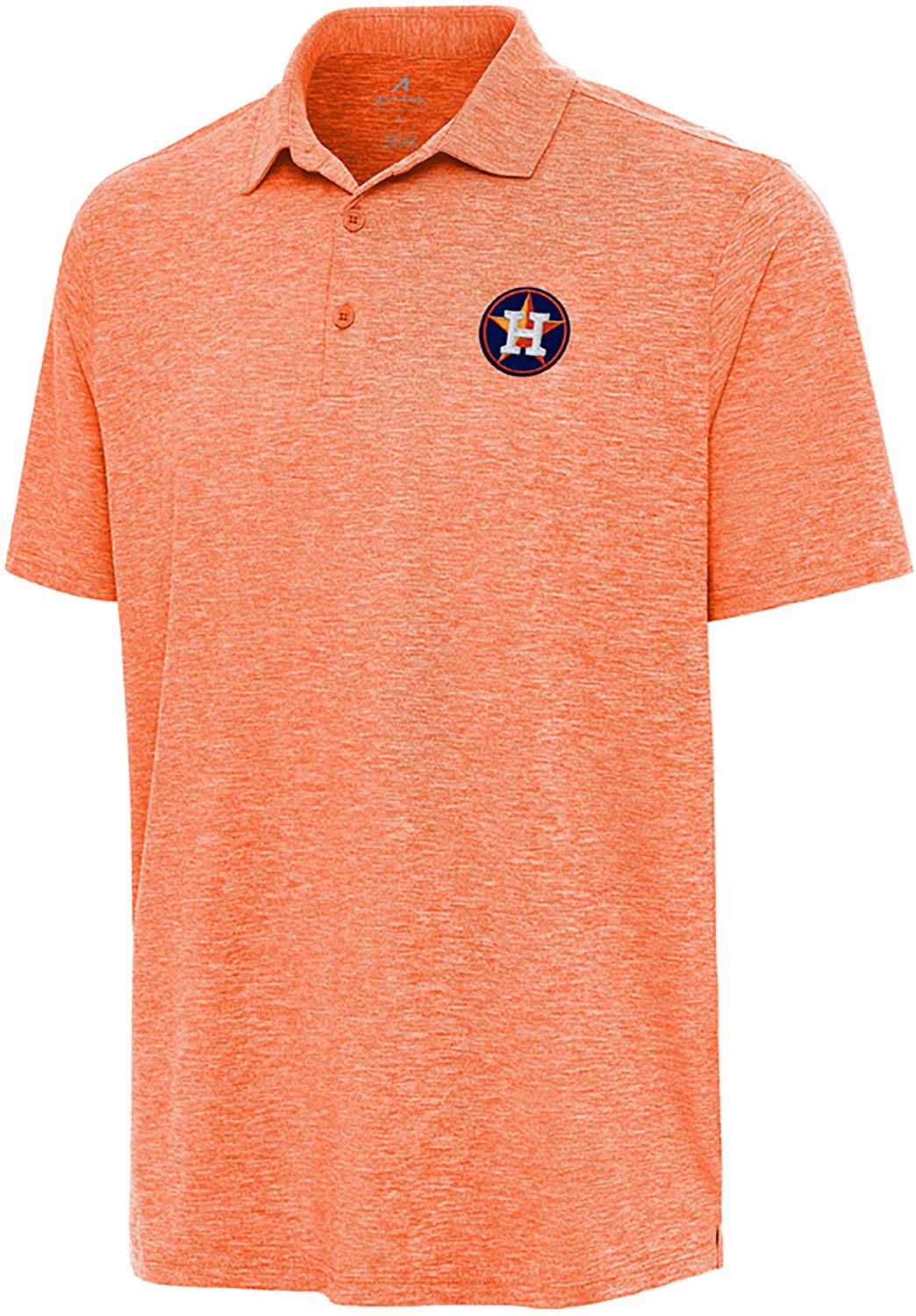Hit the green and support your team in the Antigua Men's Houston Astros Par 3 Polo Shirt. It is made of 88% polyester and 12% spandex. The sleek self-collar band and convenient side vents ensure breathability and ease of movement, and its matte logo buttons add a touch of sophistication. The signature Antigua 'A' emblem elegantly placed on the right sleeve.