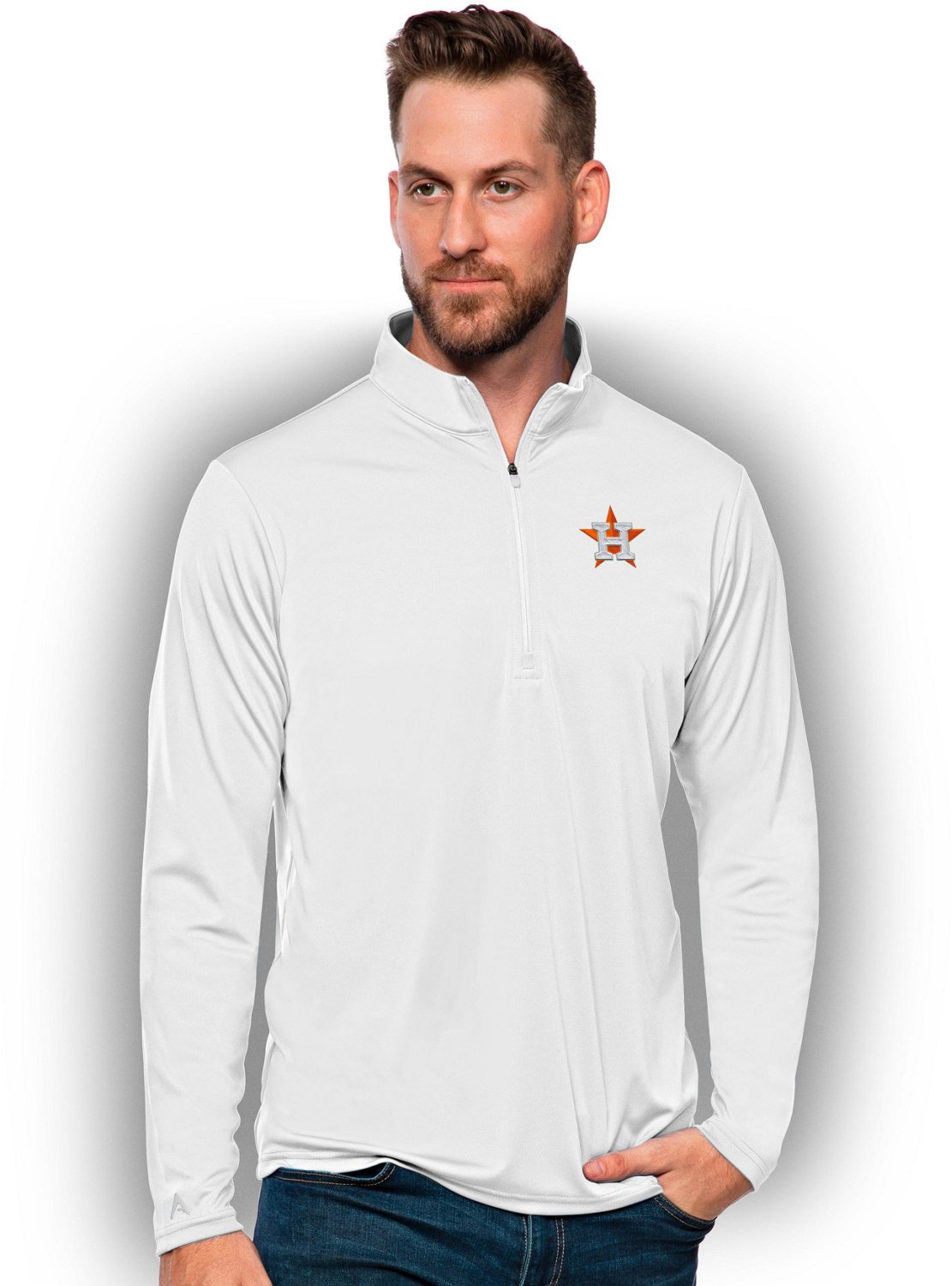 Represent your team on the water or the golf course when you wear an Antigua Men's Houston Astros Tribute Pullover. This lightweight interlock pullover provides UPF 50+ protection in harsh sunlight. The 1/4 zip closure lets you adjust your coverage while a logo graphic puts team spirit on display.