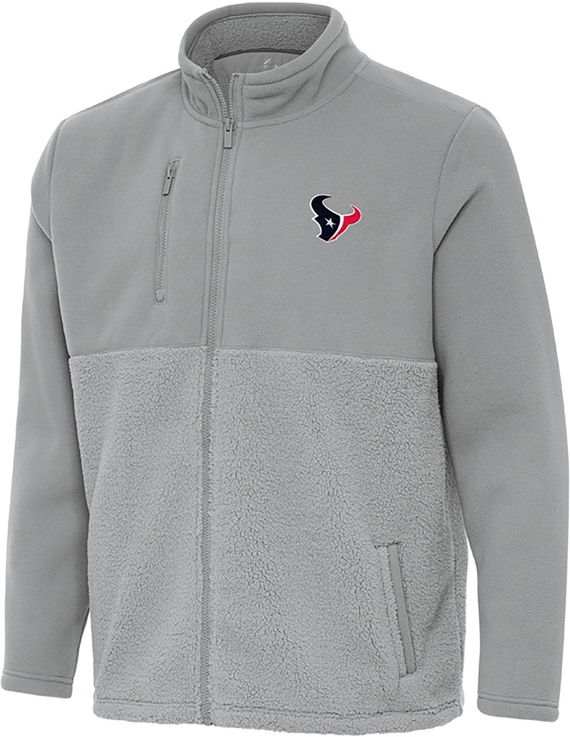 Support your favorite team with the Antigua Men's Houston Texans Daily Fused Jacket. The polyester Sherpa bonded polar fleece fabric provides a warm and comfortable feel, while the team logo shows off your Texans pride.