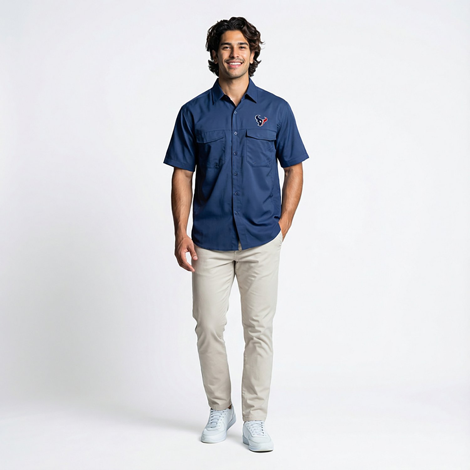 Rep your favorite team with the Antigua Men's Houston Texans Game Day Woven Fishing Shirt. The polyester and spandex material provides a comfortable feel, while the UPF 50+ sun protection shields against harmful UV rays. The embroidered team logo shows off your Texans pride.