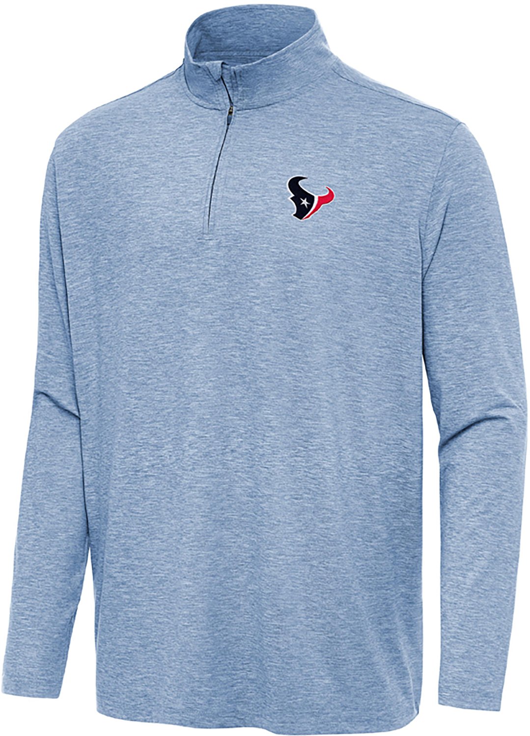 Stay warm on gameday with the Antigua Men's Houston Texans Hunk QZ Pullover. This soft fleece pullover is made with a brushed polyester and spandex blend for all-day stretch and coziness. The 1/4 zipper makes it easy to layer over your favorite clothes, and the Texans logo helps you cheer on your favorite team.