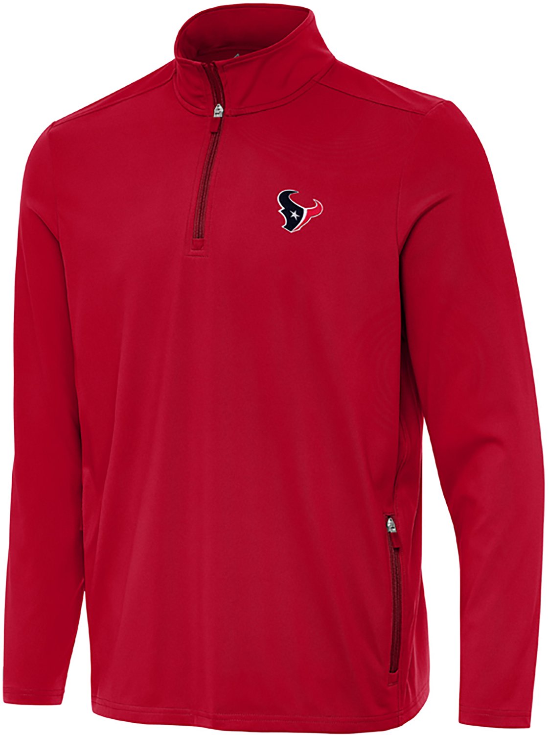 Embrace chilly mornings in the Antigua Men's Houston Texans Perilous QZ Pullover. This warm sweatshirt is made of a soft blend of polyester and spandex that lets you move freely. Throw it on over your shirt and let the Texans logo show your support for your favorite team.