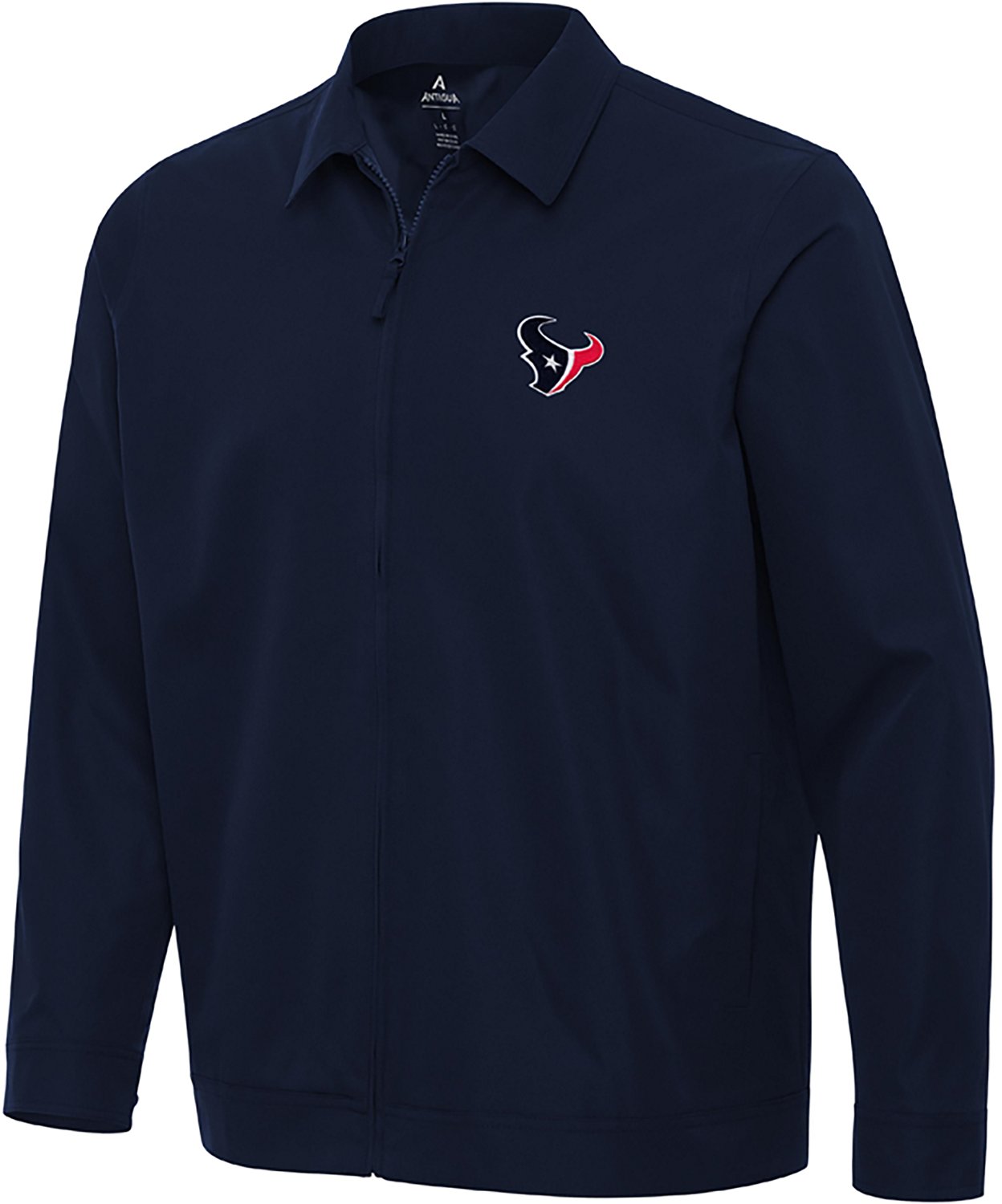 Stay warm throughout the day in the Antigua Men's Houston Texans Pivot Jacket. This lightweight polyester jacket has an inner liner, making it a great outer layer for adventuring, running errands or relaxing. The full zipper makes it easy to take on and off, and the Texans logo adds a stylish look.