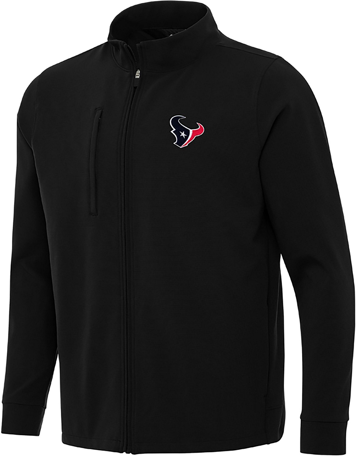 Rep your team while out and about with the Antigua Men's Houston Texans Regard Jacket. This classic fleece-style jacket has multiple pockets and a full zipper for easy layering and convenience. The textured polyester creates a soft feel against your skin, while the Texans logo shows your team pride.