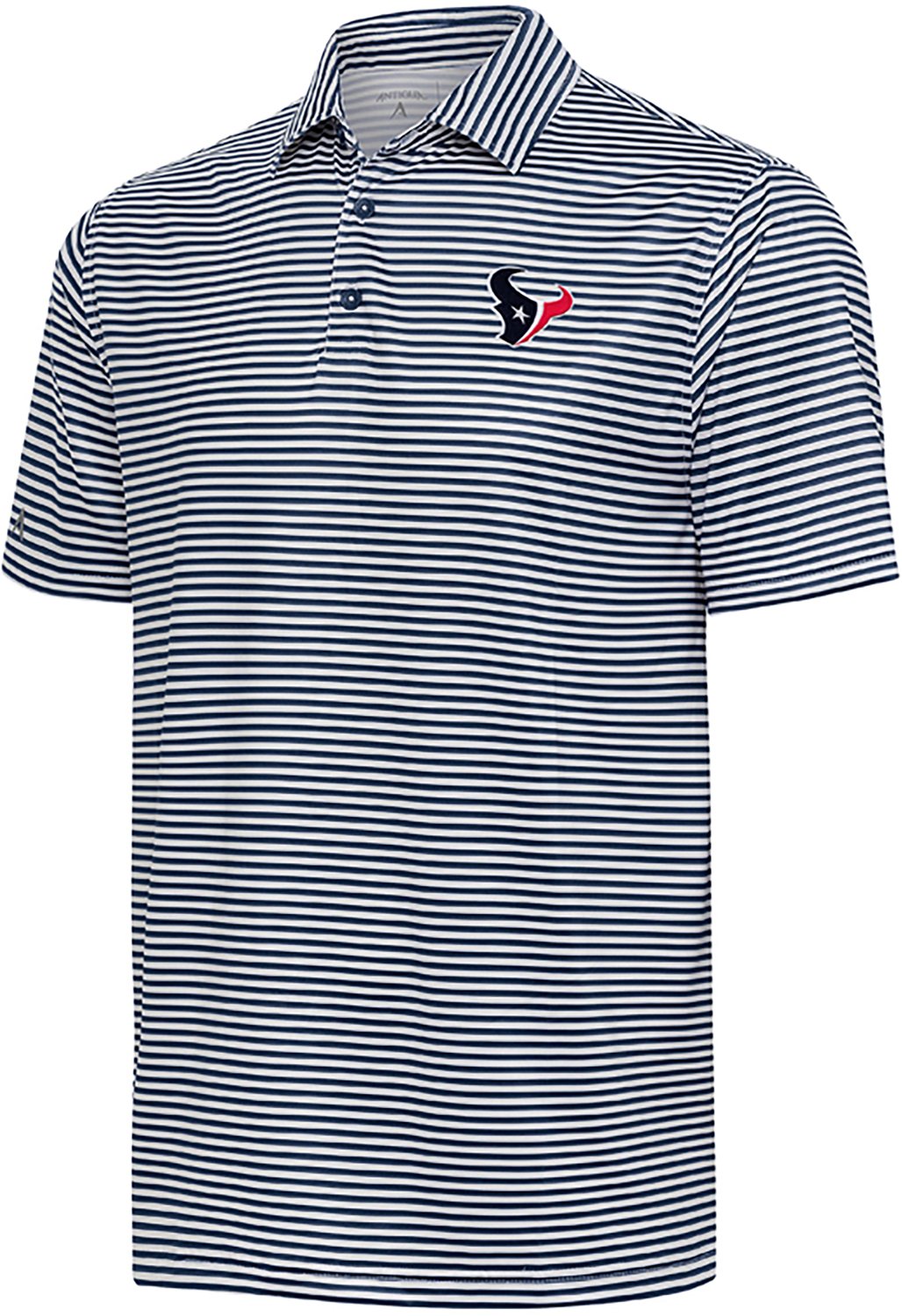 Add a multipurpose shirt to your wardrobe with the Antigua Men's Houston Texans Skills Polo Shirt. This lightweight polo is great for running errands, business casual office days and golfing. The stretchy polyester blend creates a comfortable fit, while the sublimated stripe pattern is complimented by a Texans logo that stylishly supports your favorite team.