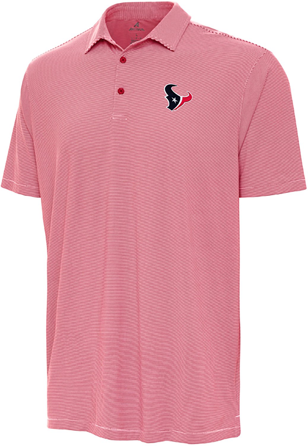 Live life in style in the Antigua Men's Houston Texans Twine Polo Shirt. This lightweight shirt is made of a stretchy polyester blend that is easy to layer over a long sleeve shirt or under a pullover. The microstripe pattern and Texans logo provide an elegant way to rep your team.