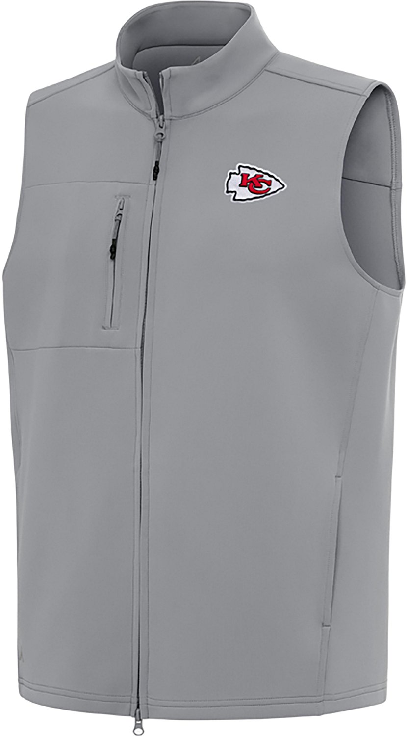Add another layer to your game day look with the Antigua Men's Kansas City Chiefs Demand Full-Zip Vest. The polyester and spandex material provides a comfortable feel, while the team logo shows off your Chiefs pride.