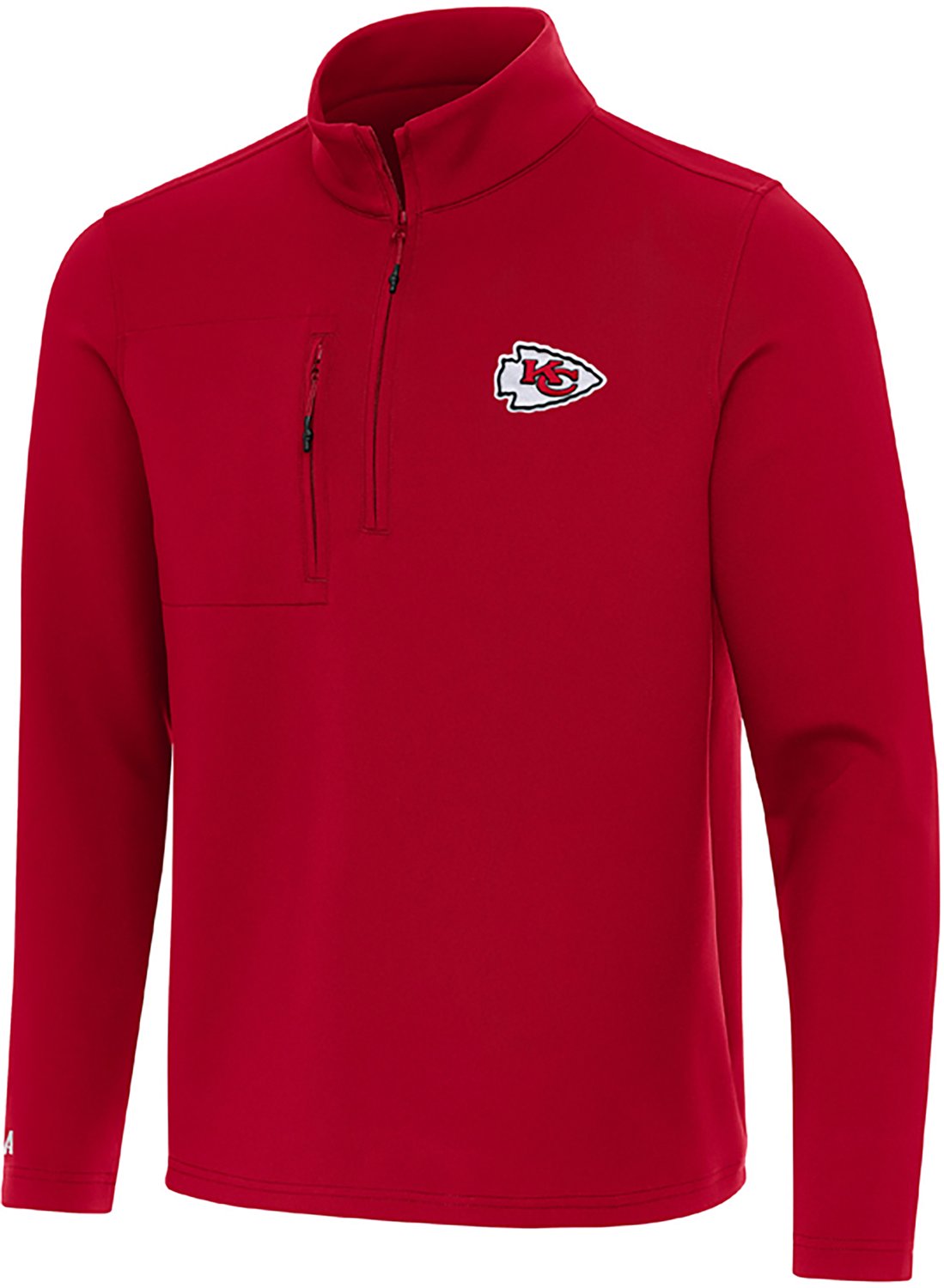 Stay cozy and in style for the game with this Antigua Men's Kansas City Chiefs Insider 1/4 Zip Pullover. It is made of 90% polyester and 10% spandex for durability and a flexible fit that moves with you, and the pullover has a right side zip pocket to securely store small items. Features a Kansas City Chiefs logo on the chest.