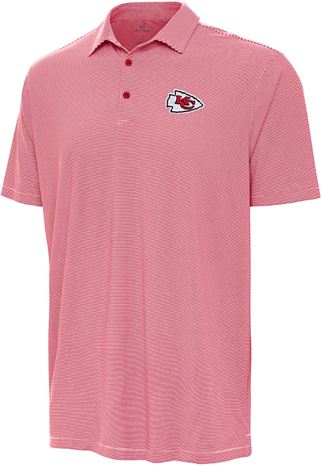 Live life in style in the Antigua Men's Kansas City Chiefs Twine Polo Shirt. This lightweight shirt is made of a stretchy polyester blend that is easy to layer over a long sleeve shirt or under a pullover. The microstripe pattern and Chiefs logo provide an elegant way to rep your team.