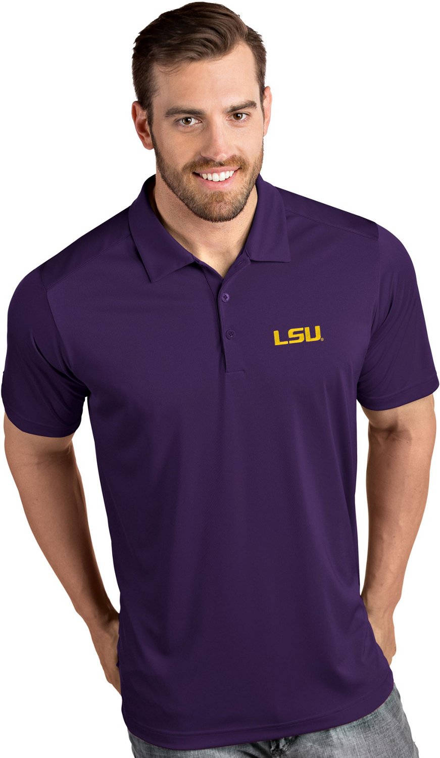 Rally for the Tigers in the Antigua Men's Louisiana State University Tribute Polo. This short-sleeve polo looks great in the stands or at work with its self-fabric collar and 3-button placket. Desert Dry™ technology helps to keep you dry, and the team-themed design adds a stylish flair. For more team shirts and NCAA gear, check out Academy.com.