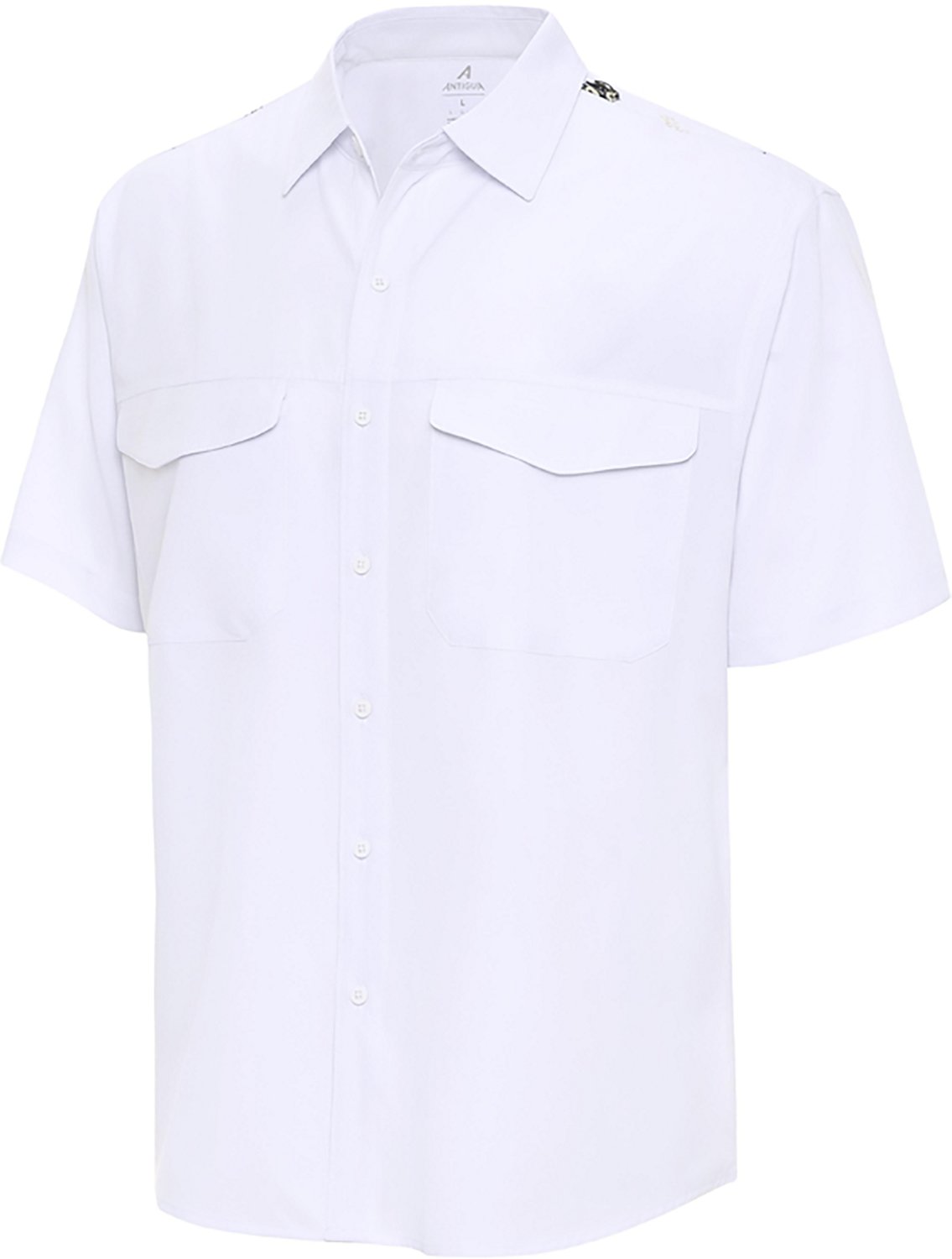 Root for your favorite team when you wear the Antigua Men's New Orleans Saints Gameday Scatter Print Fishing Shirt. It is made of 93% polyester and 7% spandex. The UPF 50+ provides protection from the sun, and its split back yoke enhances breathability. The chest pockets with flaps and hook-and-loop closures allow you to carry around small items.