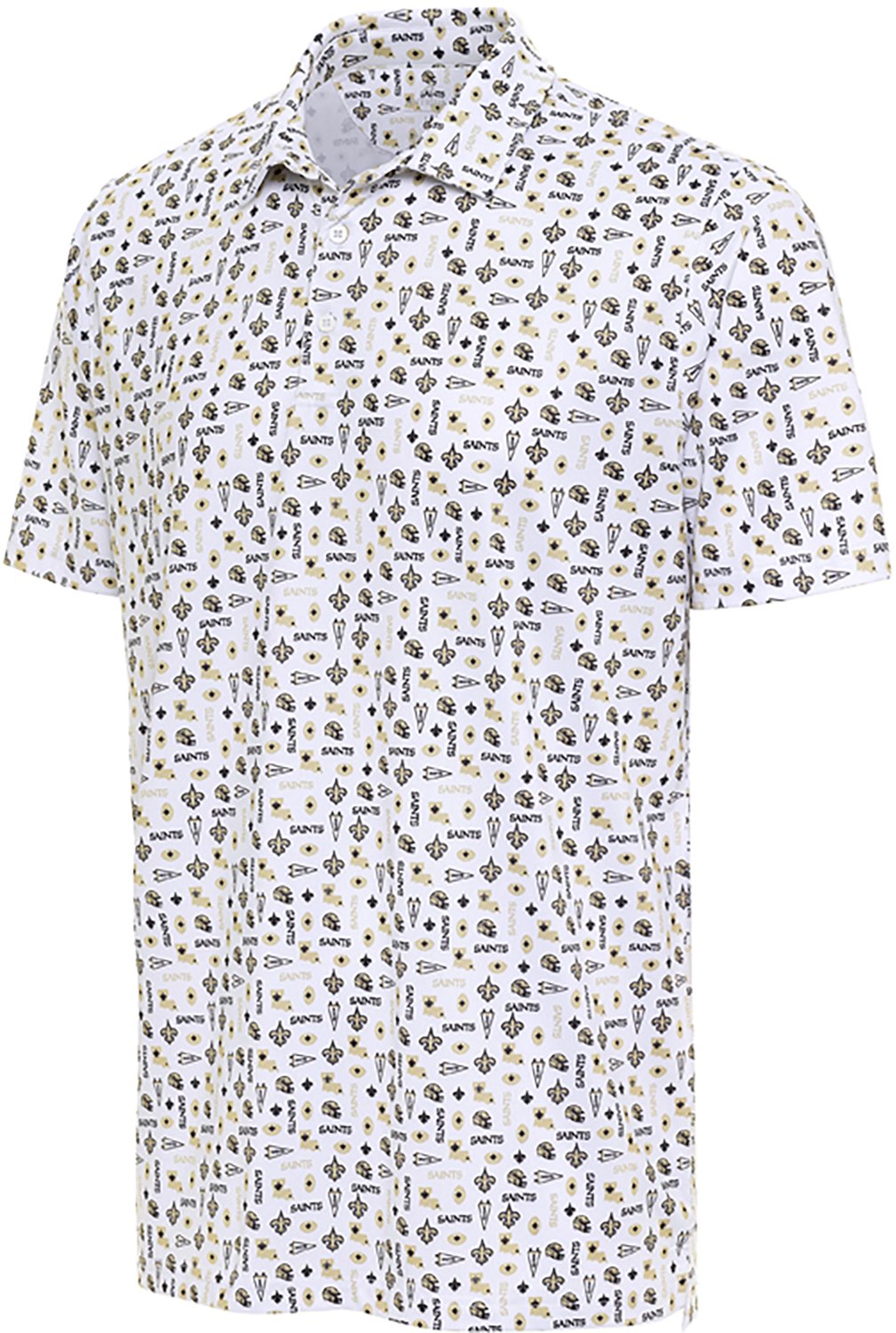 Sublimated New Orleans Saints logo and icon are printed over the entire shirt