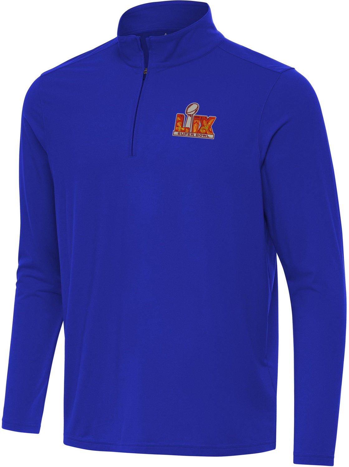 Celebrate Super Bowl LIX with the Antigua NFL Super Bowl LIX 1/4 Zip Pullover. This lightweight, moisture-wicking top is designed to keep you cool and comfortable in mild weather. With embroidered graphics and four-way stretch fabric, it offers both style and performance, perfect for showcasing your NFL spirit.