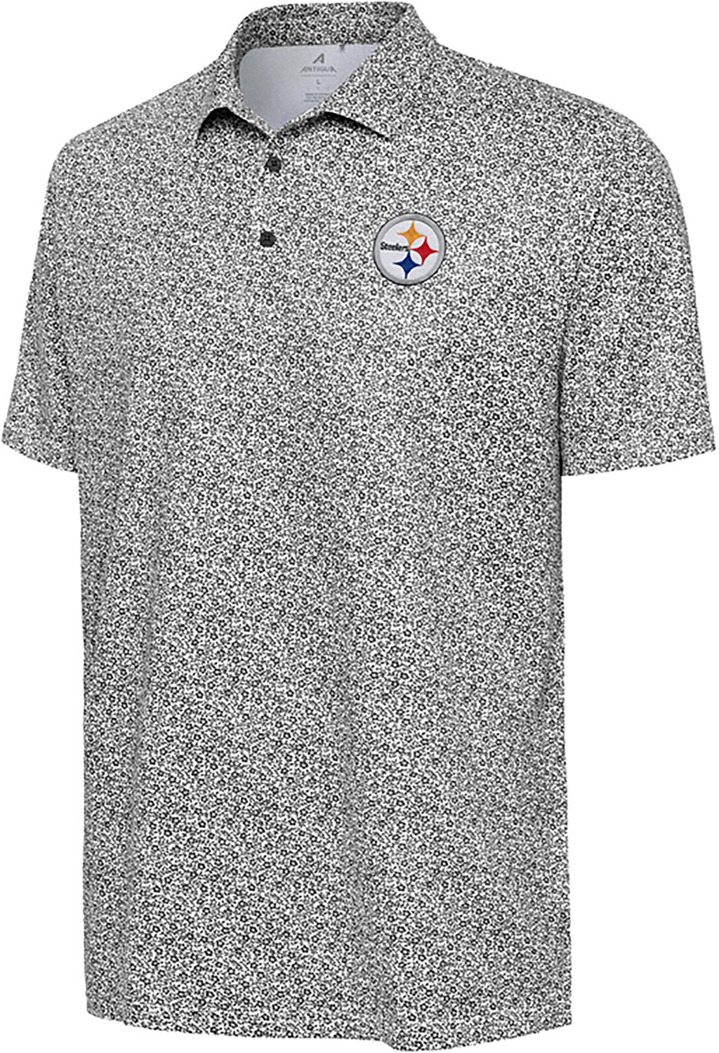 Let everyone know you're a true fan when you wear the Antigua Men's Steelers Field Ditsy Polo Shirt. The 94% polyester and 6% poly sheen fabric offers lasting wear, while the team graphic puts your fandom front and center.