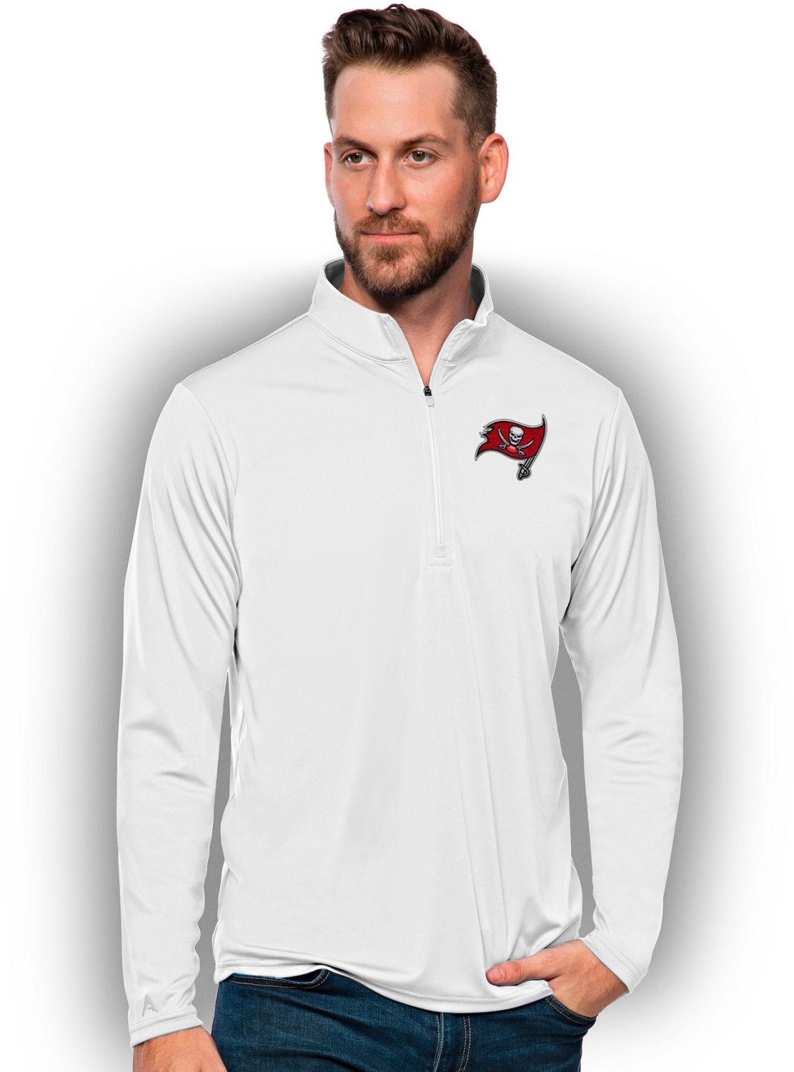 Keep yourself comfortable in Buccaneers style by wearing the Antigua Men's Tampa Bay Buccaneers Tribute Pullover. The polyester construction provides comfort throughout the entire day, and the Buccaneers design displays your love of the team.