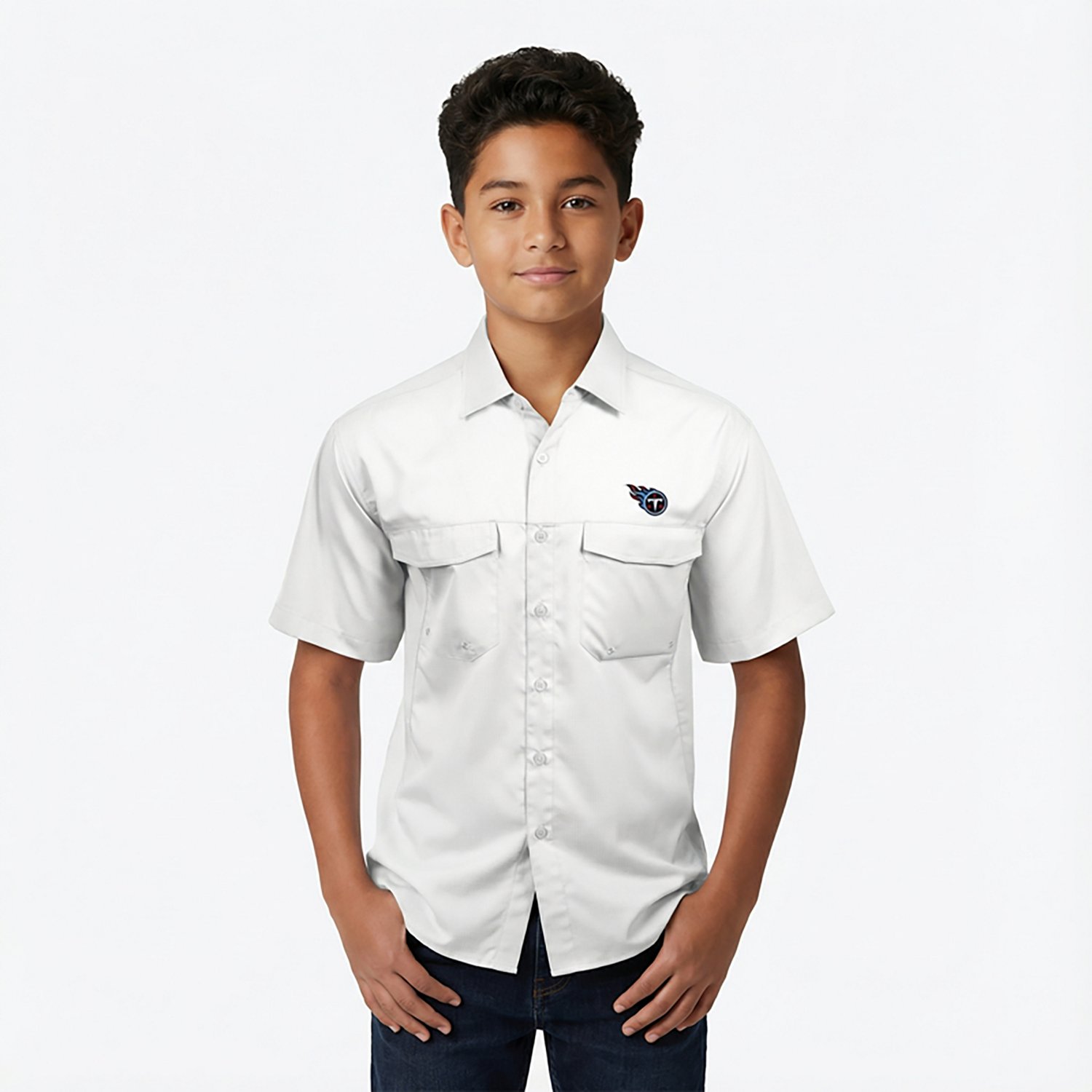 Show your Titans pride as you hit your favorite fishing pools with the Antigua Men's Tennessee Titans Game Day Woven Fishing Shirt. This short-sleeve, button-down shirt uses Desert Dry™ Xtra-Lite technology to help keep you dry and cool, while the UPF 50+ treatment helps protect you from harsh rays. The split back yoke aids in circulation, and the embroidered team logo on the left chest adds a trendy look. For more team shirts and NFL gear, head to Academy.com.