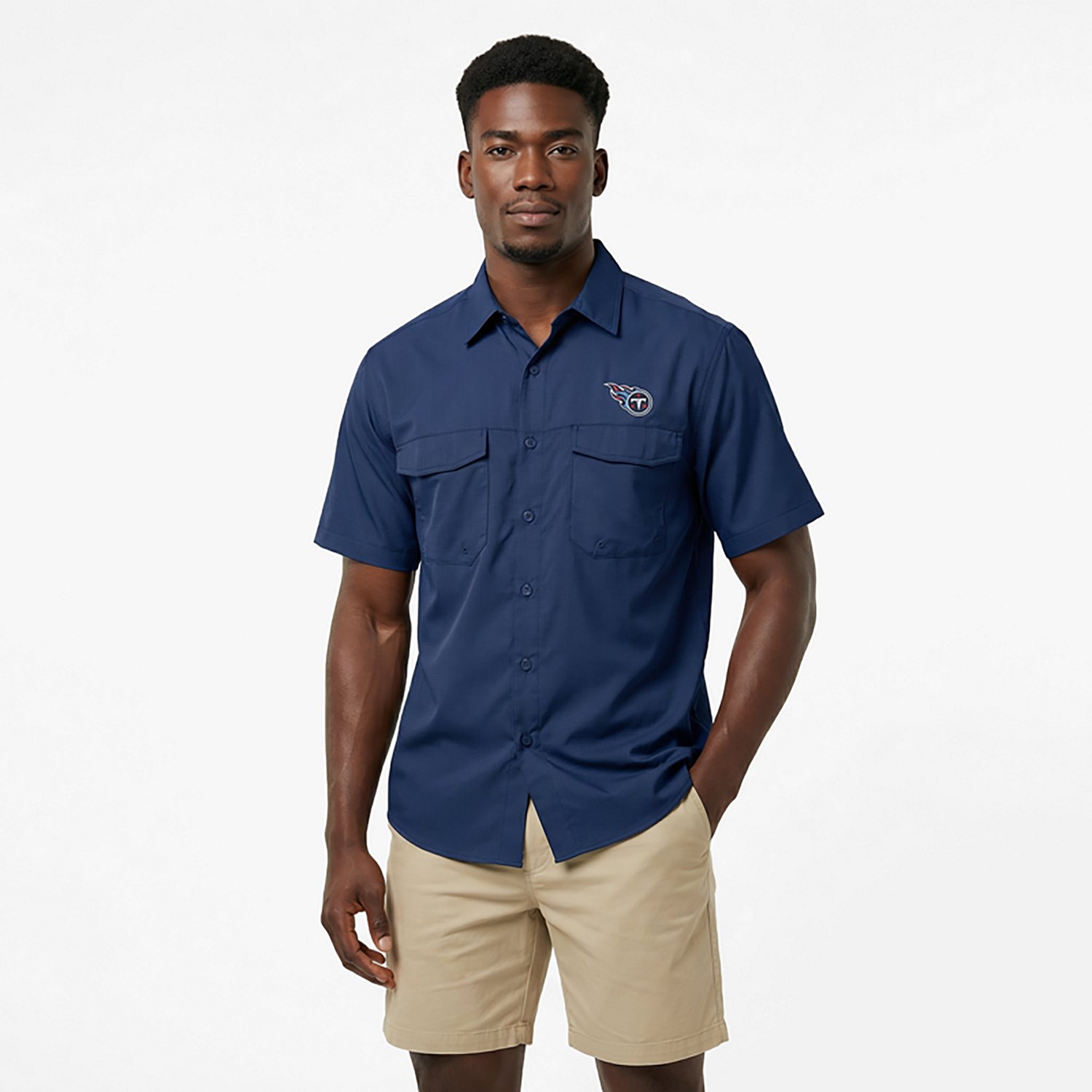 Show your Titans pride as you hit your favorite fishing pools with the Antigua Men's Tennessee Titans Game Day Woven Fishing Shirt. This short-sleeve, button-down shirt uses Desert Dry™ Xtra-Lite technology to help keep you dry and cool, while the UPF 50+ treatment helps protect you from harsh rays. The split back yoke aids in circulation, and the embroidered team logo on the left chest adds a trendy look. For more team shirts and NFL gear, head to Academy.com.