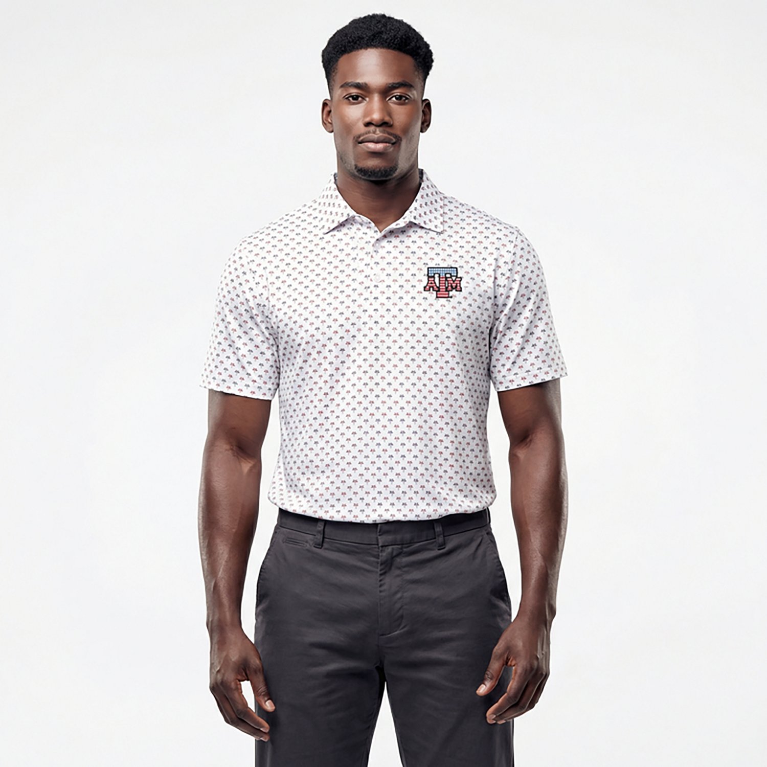 Highlight your fandom by wearing the Antigua Men's Texas A&M Ameri Kona Polo Shirt. This polo is made of 94% polyester and 6% poly sheen fabric to help provide a soft and cozy feel, and it features a team design over a palm tree pattern for a summery style fans will love.