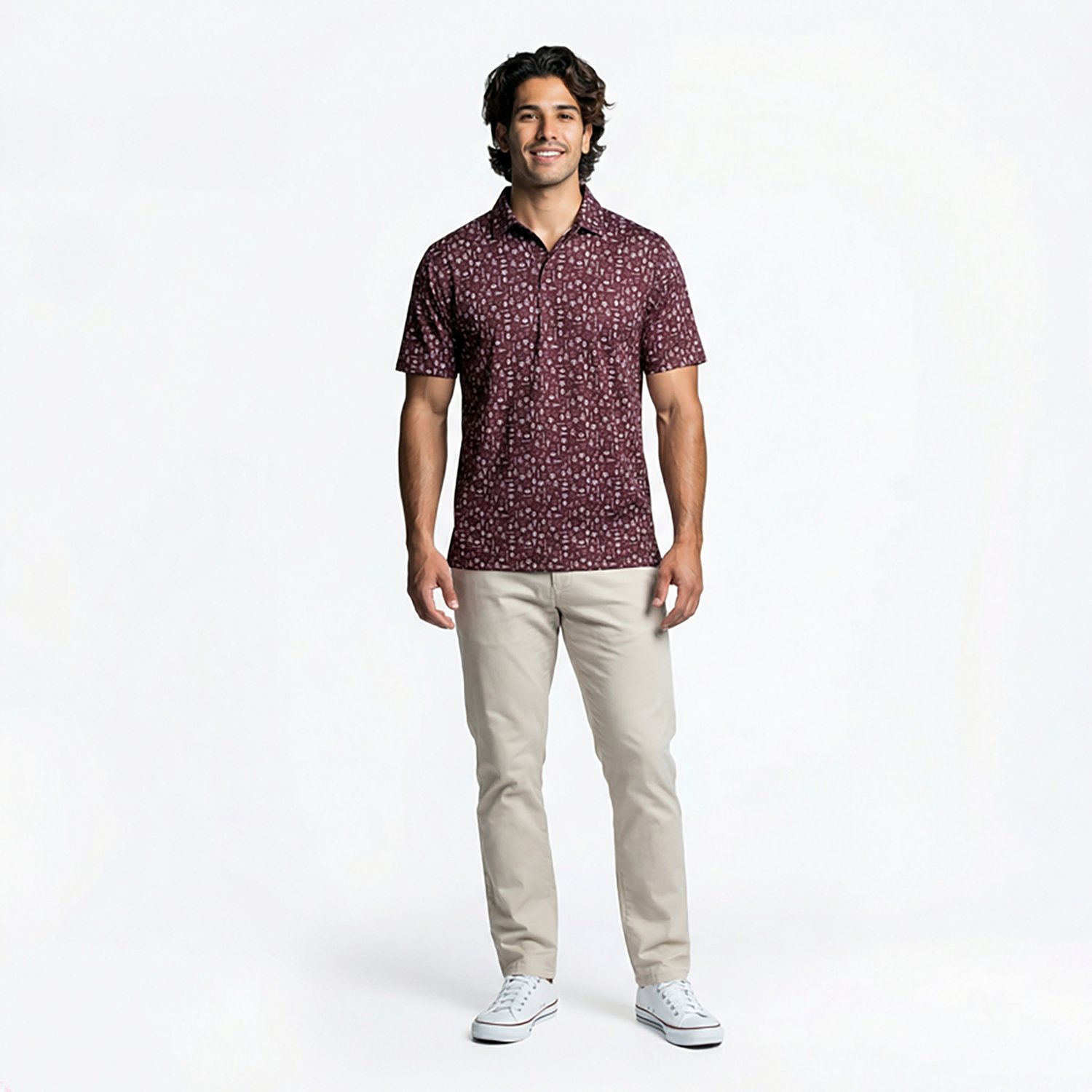 Help other fans get in the mood for a win by donning the Antigua Men's Texas A&M Lateral Polo Shirt, which offers a polyester and spandex blend with hem vents for all-day comfort. The shirt is designed with sublimated team logo icons throughout, offering a look that will set you apart.