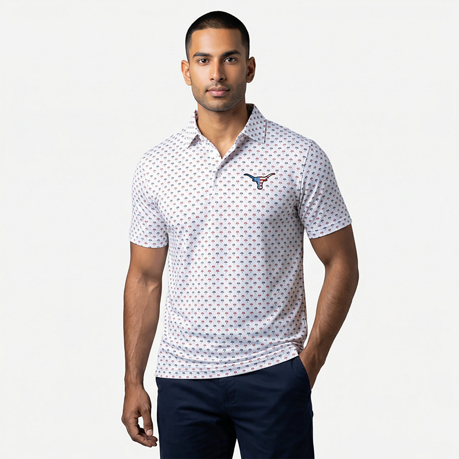 Highlight your fandom by wearing the Antigua Men's Texas Ameri Kona Polo Shirt. This polo is made of 94% polyester and 6% poly sheen fabric to help provide a soft and cozy feel, and it features a team design over a palm tree pattern for a summery style fans will love.