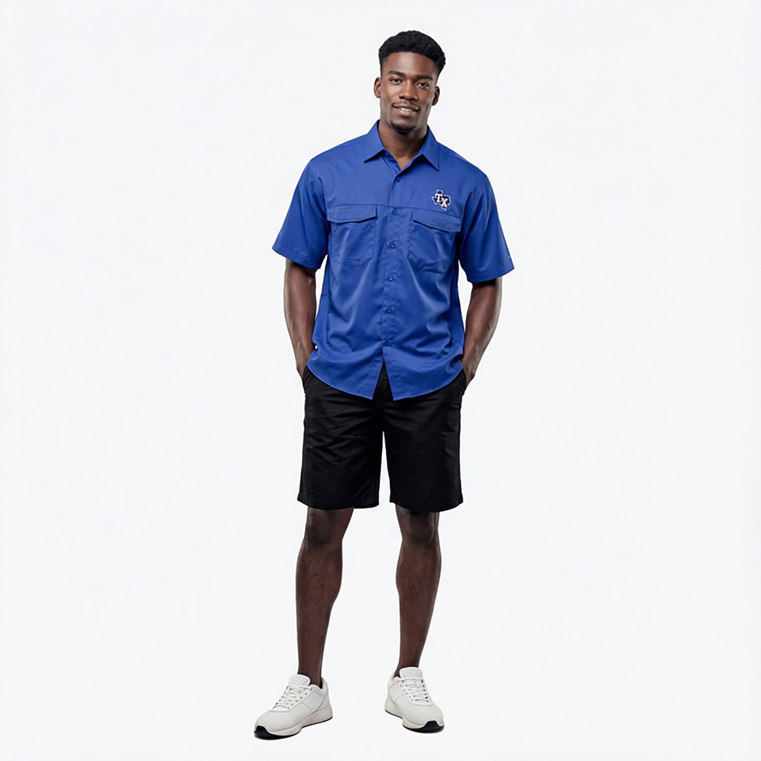 Antigua Men's Texas Rangers Game Day Woven Fishing Shirt