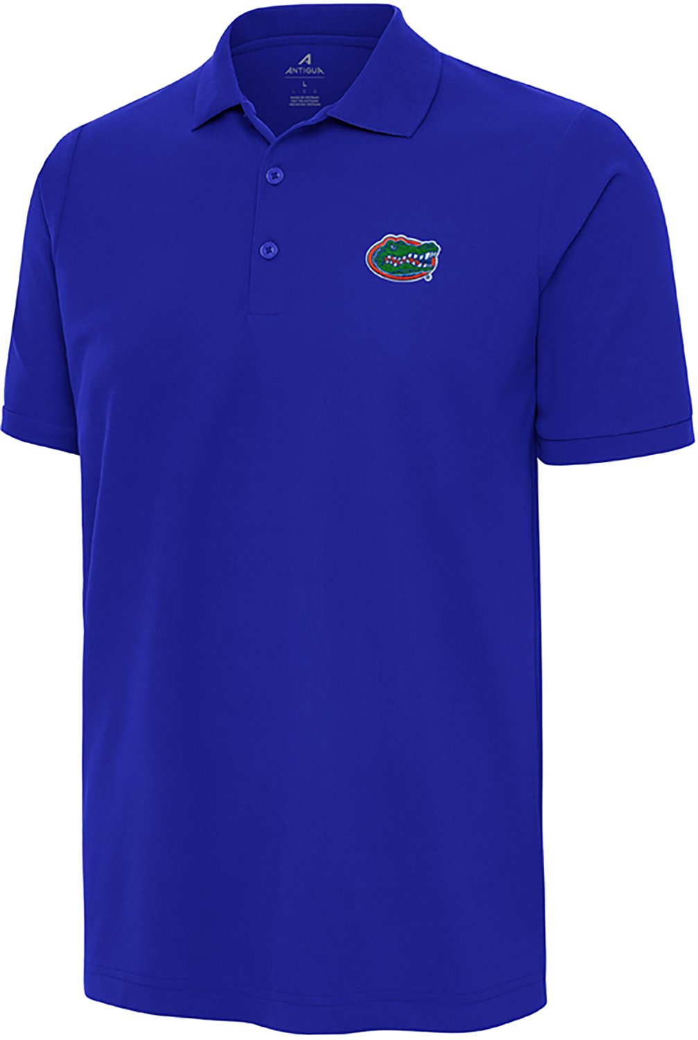 Show your support with the Antigua Men's University of Florida Gators Legacy Pique Short Sleeve Polo Shirt. The polyester material is knit and comfortable, and the moisture-wicking material helps keep you cool and dry.