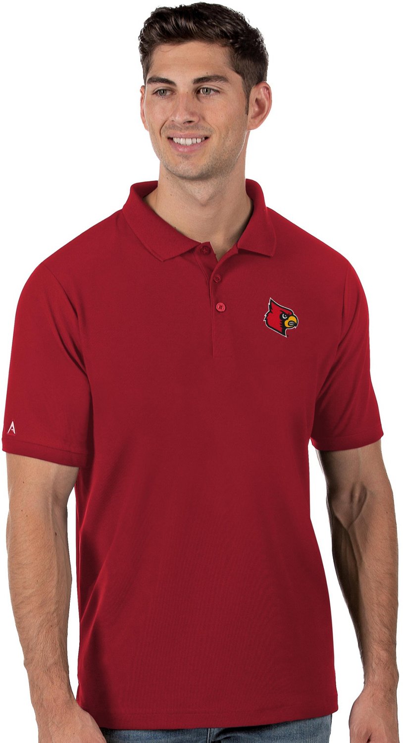 From the office to the stadium, the Antigua Men's University of Louisville Legacy Pique Polo Shirt makes it easy to represent the Cardinals. It's made from 100% polyester and has short sleeves and a flat-knit collar for classic style. The team logo makes the shirt that much better for any Louisville fan.