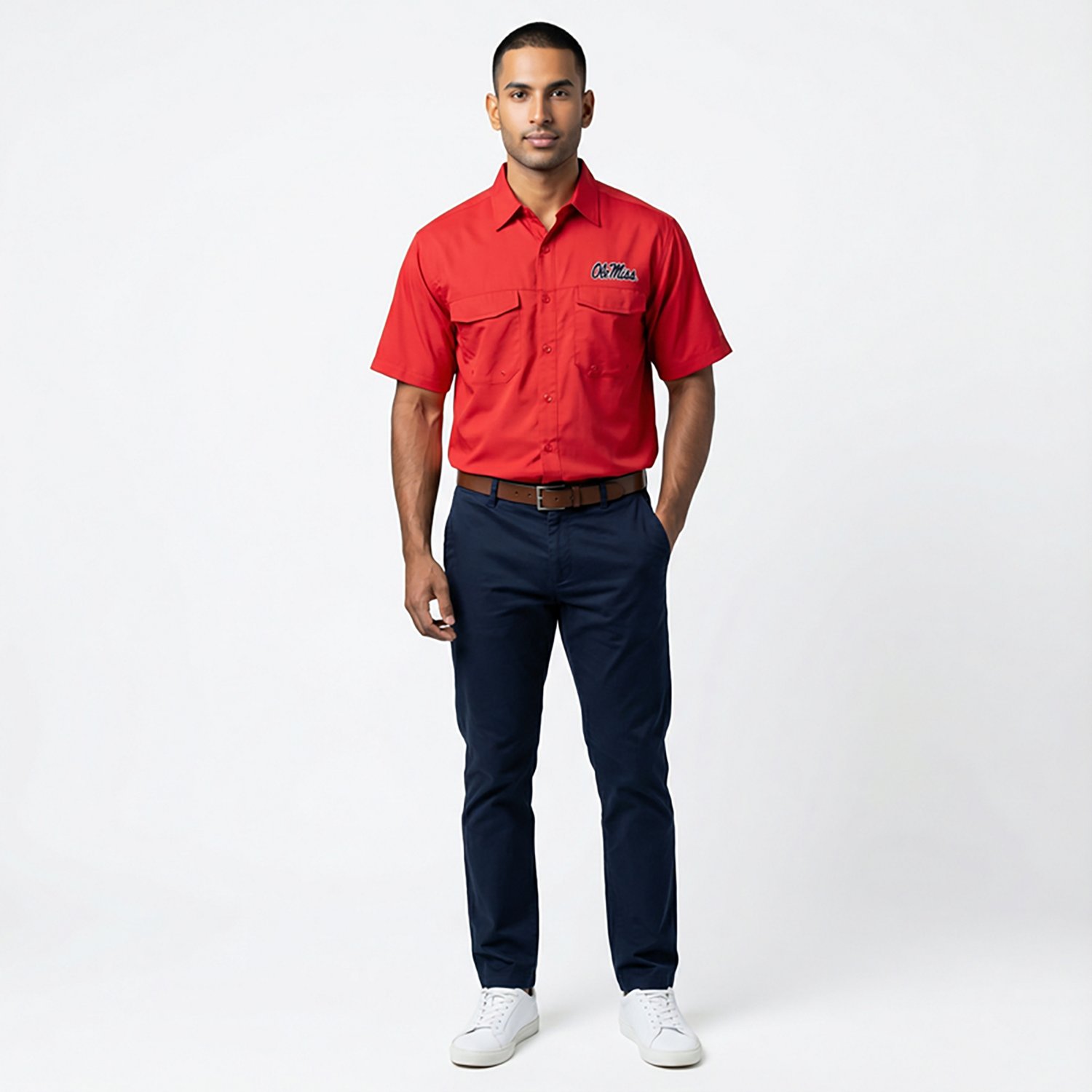 Whether you're in the stands or out on the water, display your love of the Ole Miss Rebels in the Antigua Men's University of Mississippi Game Day Woven Fishing Shirt. This short-sleeve fishing shirt is enhanced with Desert Dry™ Xtra-Lite technology for moisture-wicking and quick-drying capabilities. Plus, its UPF 50+ treatment shields you from harsh rays. The split back yoke increases air circulation, while the embroidered school logo on the left chest adds a hint of style. For more team shirts and NCAA gear, shop Academy.com.