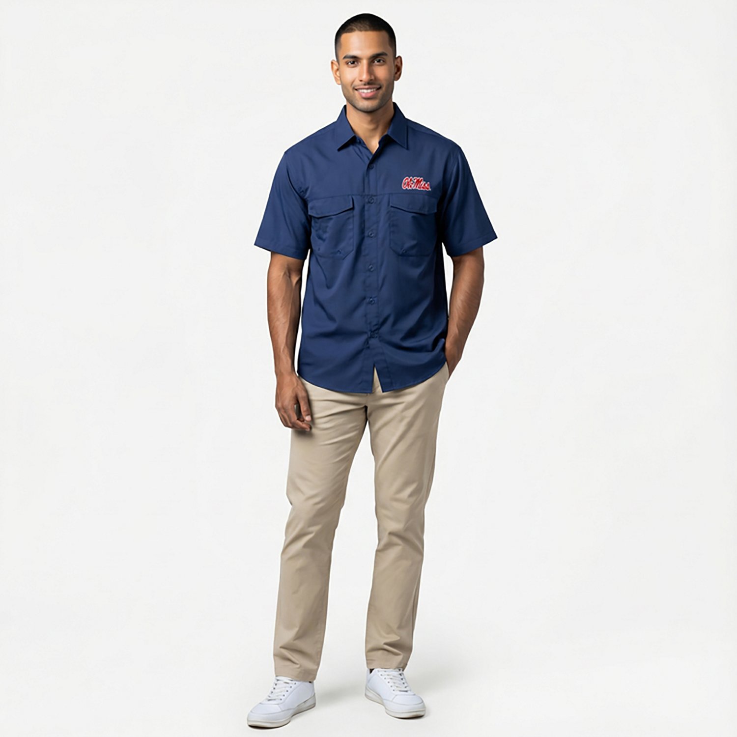 Antigua Men's University of Mississippi Game Day Woven Fishing Shirt