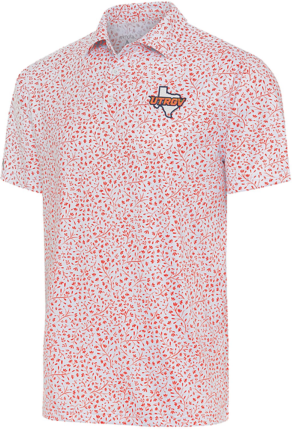 You can support the Vaqueros all season long by wearing the Antigua Men's University of Texas Rio Grande Valley Motion Polo Shirt. This polo offers a sublimated floral print and a team design to attract attention, and the 94% polyester and 6% spandex construction helps keep wearers feeling good.