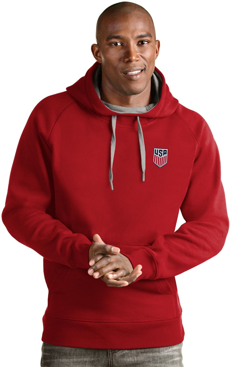 Go for it with the Antigua Men's USA Victory Hoodie. The polyester pique knit fabric provides a comfortable feel, while the hood offers coverage.