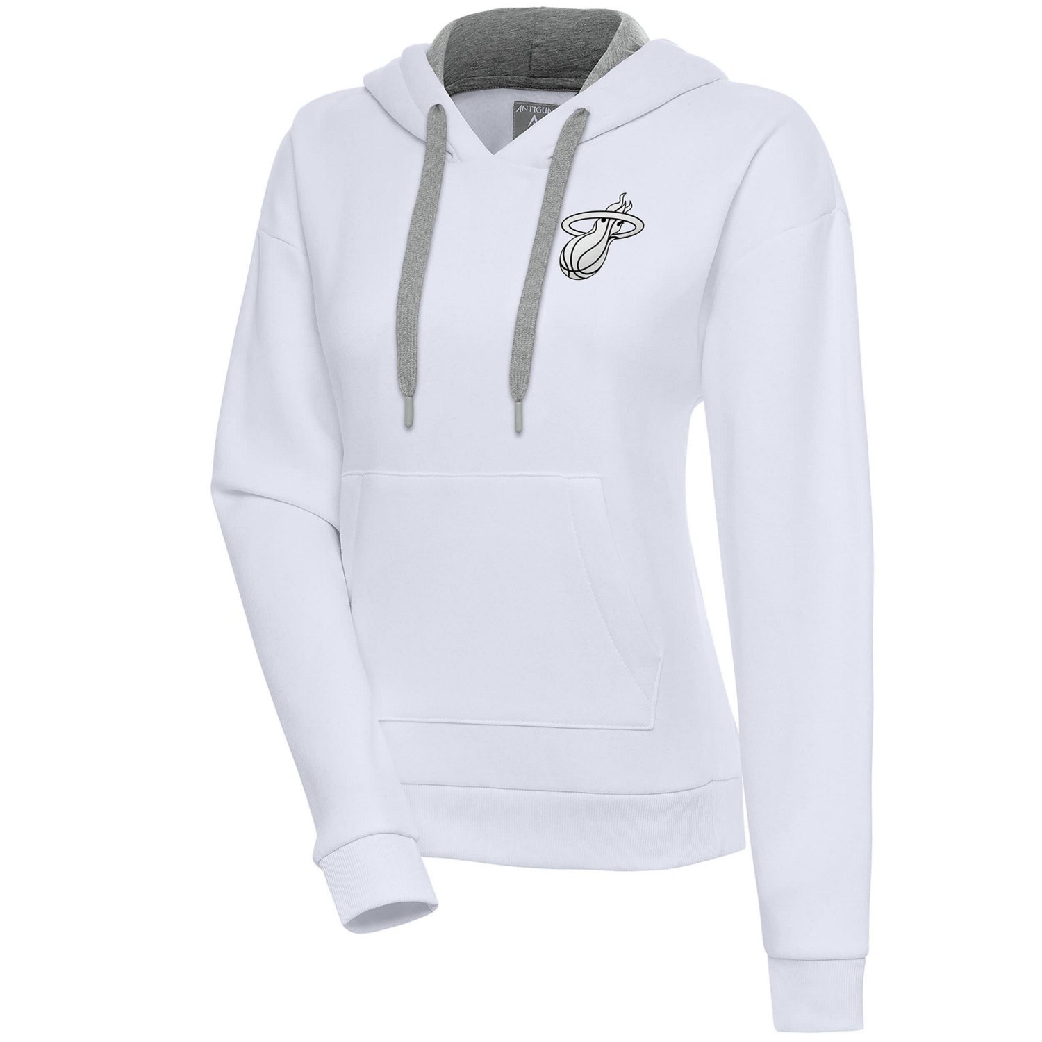 The Women's Antigua Red Miami Heat Brushed Metallic Victory Pullover Hoodie is the perfect way to show your support for the Miami Heat Made from a comfortable cotton and polyester blend this midweight hoodie features a brushed metallic patch and heat-sealed graphics that proudly display your Miami Heat pride Rib-knit cuffs and bottom hem provide a snug fit while the fleece interior keeps you warm and cozy Whether you're cheering on the Heat at the game or relaxing at home this hoodie is sure to become a favorite
