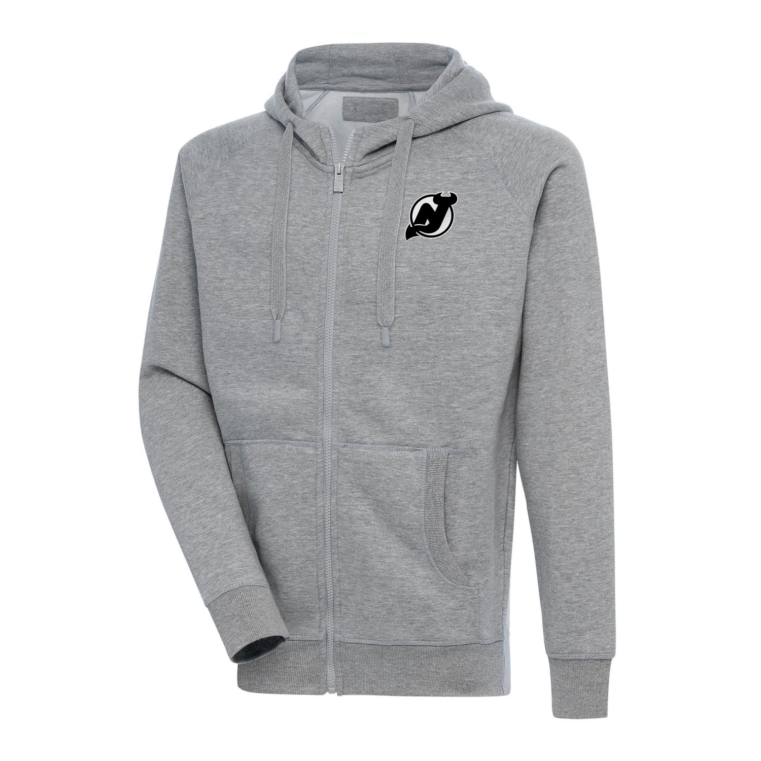 The Men's Antigua Charcoal New Jersey Devils Metallic Logo Victory Full-Zip Hoodie is the perfect way to show your support for the New Jersey Devils Made of a comfortable polyester and spandex blend this midweight hoodie features a metallic logo that will make you stand out from the crowd Ribbed details at the cuffs hem and pockets add style while the plastic-tipped shoelace drawcord and front slip pockets provide functionality Whether you're cheering on the Devils at the Prudential Center or relaxing at home this hoodie will keep you warm and comfortable