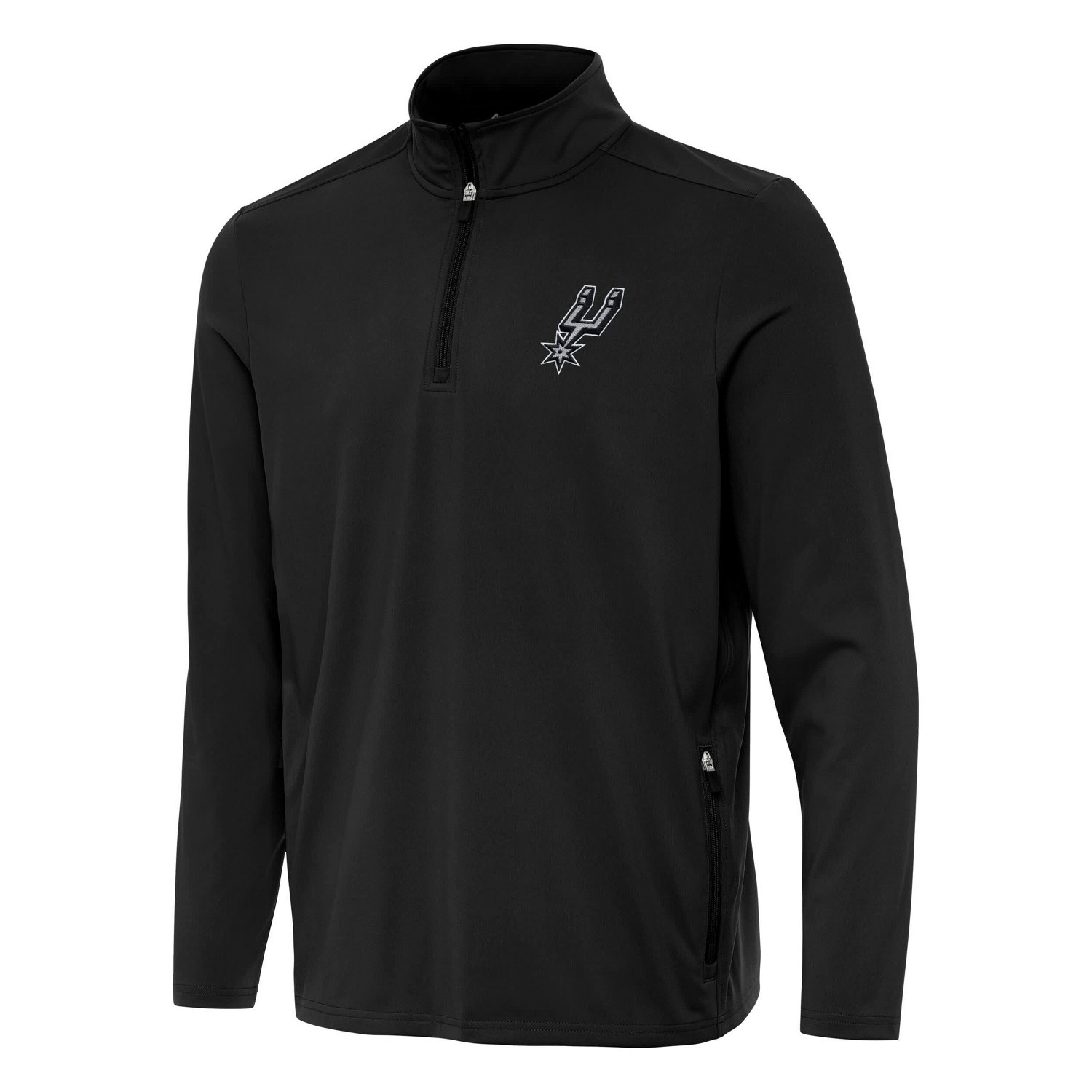 Show your San Antonio Spurs pride with this Antigua Perilous Quarter-Zip Sweatshirt This sweatshirt is made with a blend of polyester and spandex offering exceptional comfort and flexibility for all-day wear The mock collar provides added warmth while the zippered side pockets offer convenient storage for your essentials With a lightweight design it's perfect for mild temperatures making it a versatile addition to your game-day wardrobe