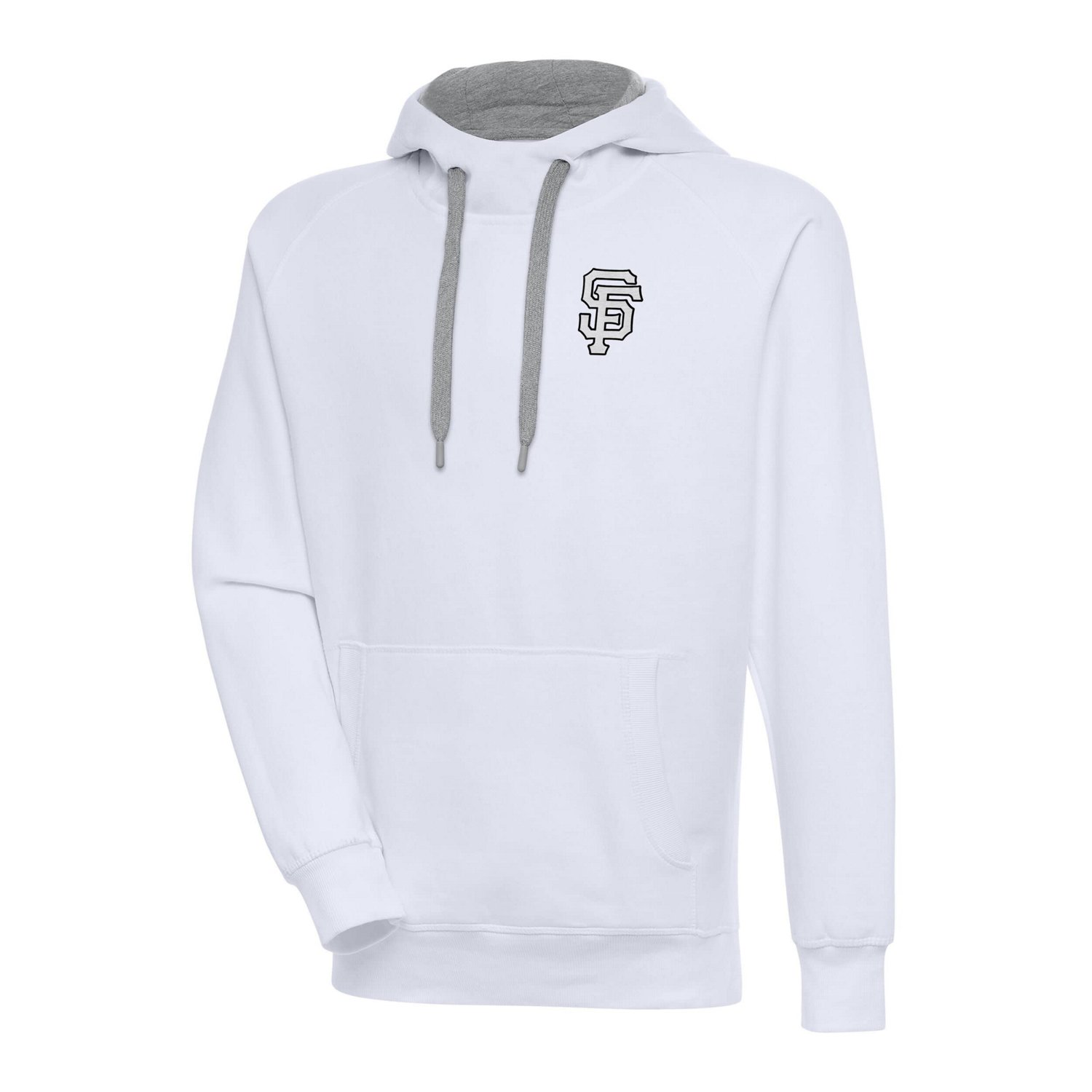 The Men's Antigua White San Francisco Giants Metallic Victory Pullover Hoodie is the perfect way to show your support for the San Francisco Giants Made from a comfortable cotton and polyester blend this midweight hoodie features embroidered graphics and raglan sleeves for a stylish and sporty look The front pouch pocket is perfect for storing your essentials and the metallic detailing adds a touch of flair Whether you're cheering on the Giants at the stadium or just relaxing at home this hoodie is sure to keep you comfortable and stylish