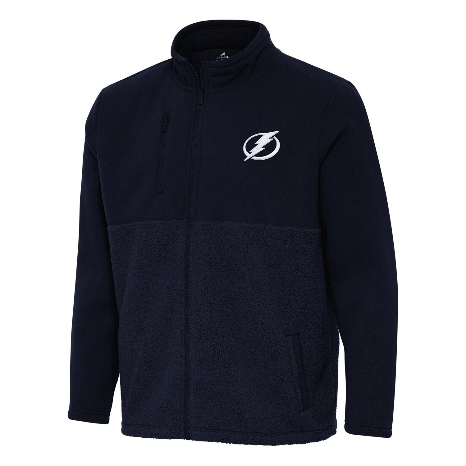 Enjoy effortless team spirit with this Tampa Bay Lightning Daily Fused Full-Zip Jacket from Antigua This Tampa Bay Lightning jacket boasts a winning combination of comfort and team spirit with its sherpa-bonded polar fleece for exceptional warmth and a prominently displayed embroidered team patch The rolled shoulder design with saddle sleeves allows for a full range of motion while angled welt pockets and a zippered chest pocket provide ample storage for all your essentials