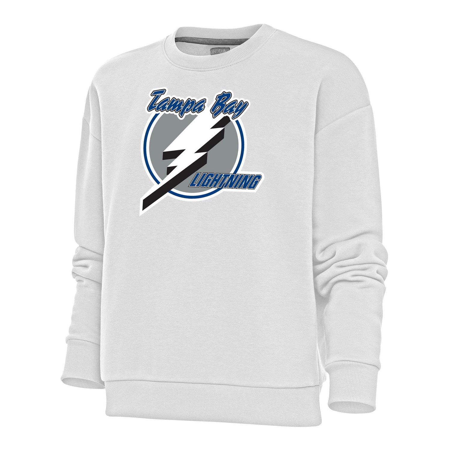 The Women's Antigua White Tampa Bay Lightning Special Edition 20 Victory Crewneck Pullover Sweatshirt is the perfect way to show your support for the Tampa Bay Lightning Made from a lightweight cotton and polyester blend this sweatshirt is ideal for mild temperatures Embroidered graphics a ribbed collar and cuffs add style while the Tampa Bay Lightning logo proudly displays your allegiance Whether you're cheering on the Lightning at the game or showing support around town this sweatshirt is a must-have for any fan