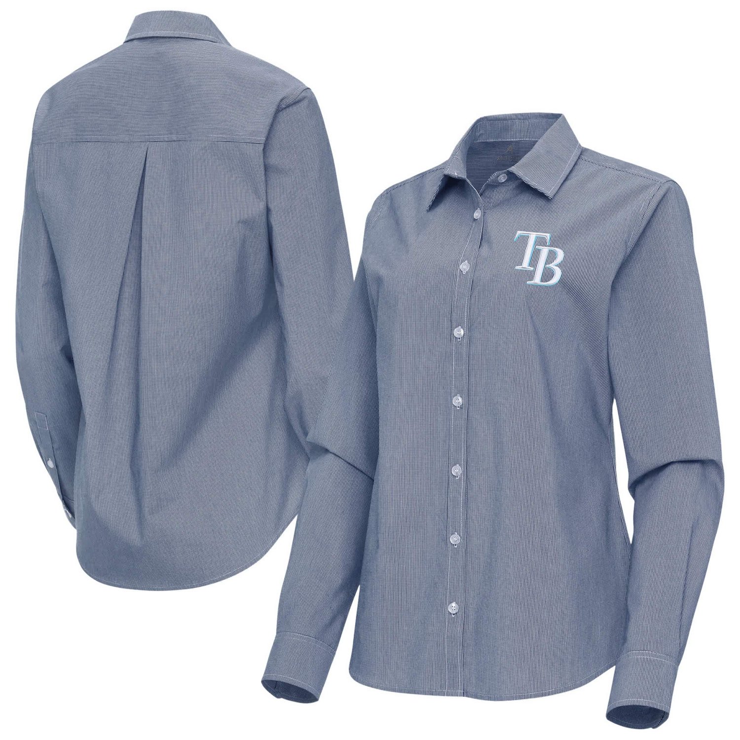 Add class and style to your Tampa Bay Rays game day look with this Antigua Porter Woven Long Sleeve Button-Up Shirt The super-soft and flexible woven fabric creates a repeating checkered pattern allover and is lightweight and breathable for extended wear throughout the day It features an embroidered team logo on the left chest making it clear you're rooting for the Tampa Bay Rays at game time or anytime