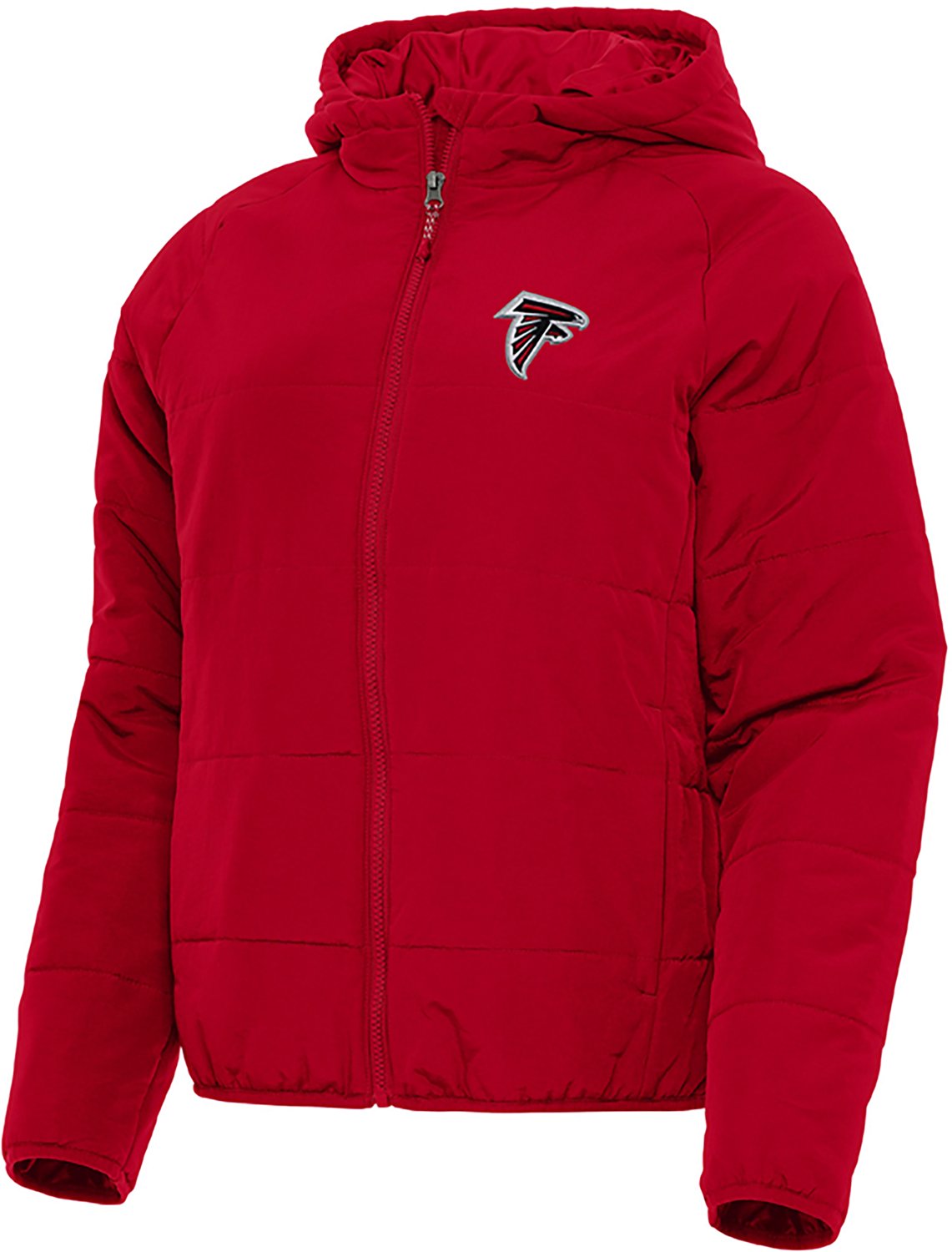 Gear up for the big game with the Antigua Women's Atlanta Falcons Universe Jacket. The polyester nylon taslan fabric provides a comfortable feel, while the 105gsm polyester fill offers warmth. The hood ensures coverage, and the team logo shows off your Falcons pride.