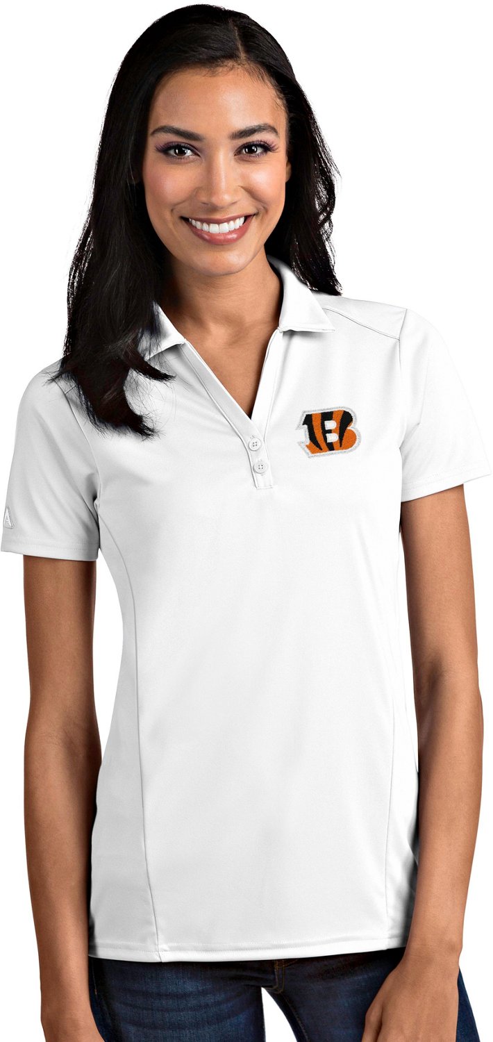 Show your support for the Bengals in the Antigua Women's Cincinnati Bengals Tribute Polo Shirt. The 100% polyester construction offers comfy, long-lasting wear, and the 2-button placket provides a classic look. The Desert Dry™ technology helps keep sweat at bay. Shop at Academy.com for more NFL apparel.