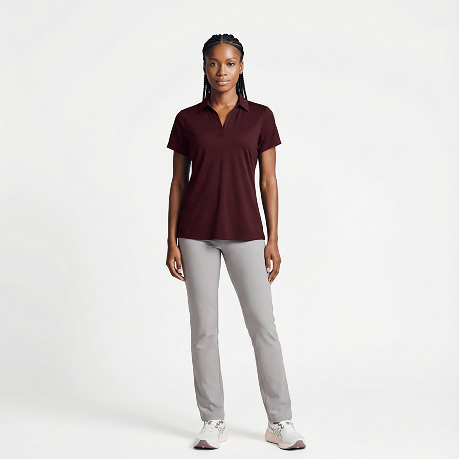 Update your golf style with the Antigua Women's Era Polo Shirt. This soft polo shirt is made of a moisture-wicking blend of polyester spandex that shields your skin from UV rays and moves with you for a lightweight feel and all-day comfort. The V-neck placket creates a modern upgrade to a classic look, while the breathable side vents help you stay cool.